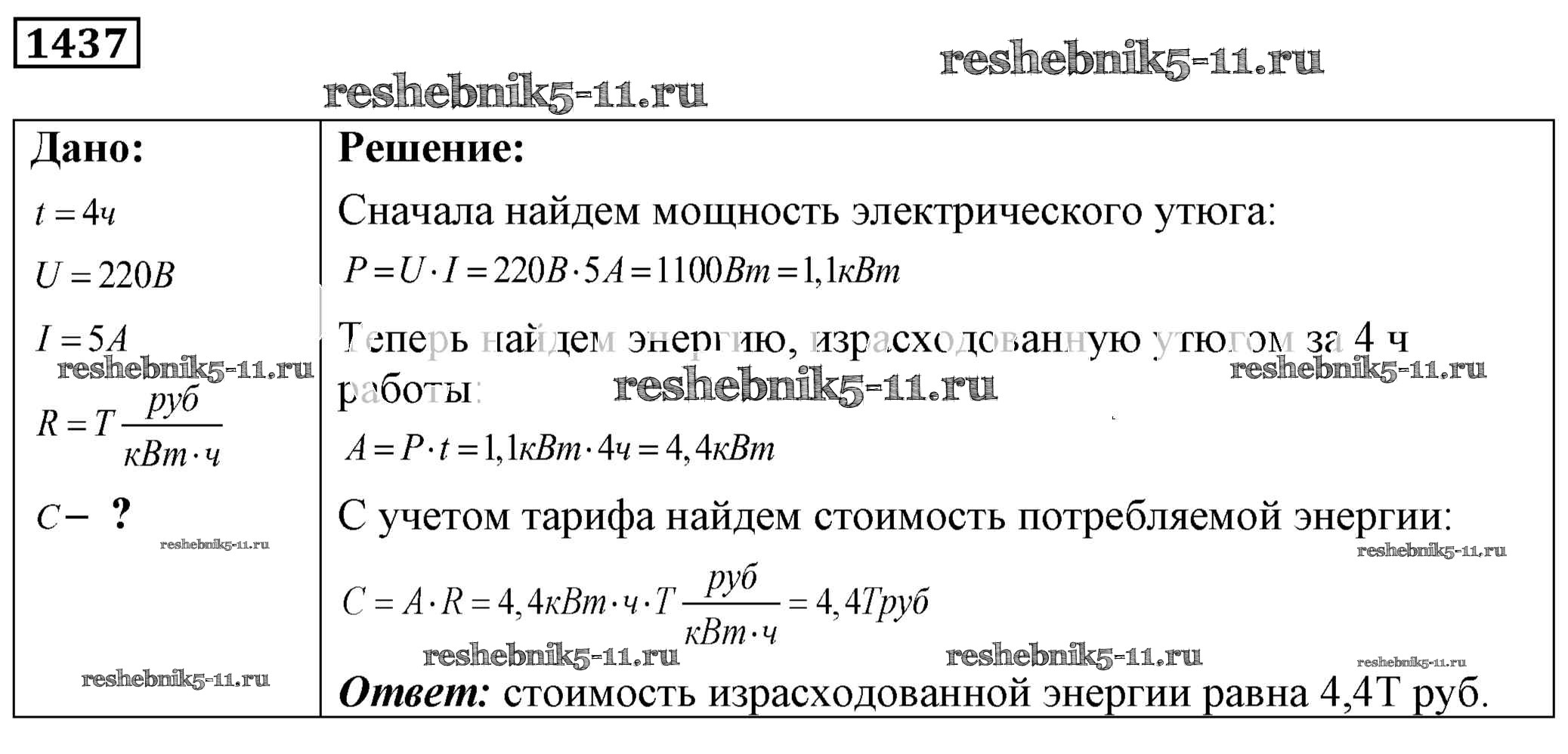 Готовая домашняя работа с ответами по Физике за 7, 8, 9 класс Лукашик, Иванова Сборник задач Просвещение 2011 ФГОС - Задания 1437