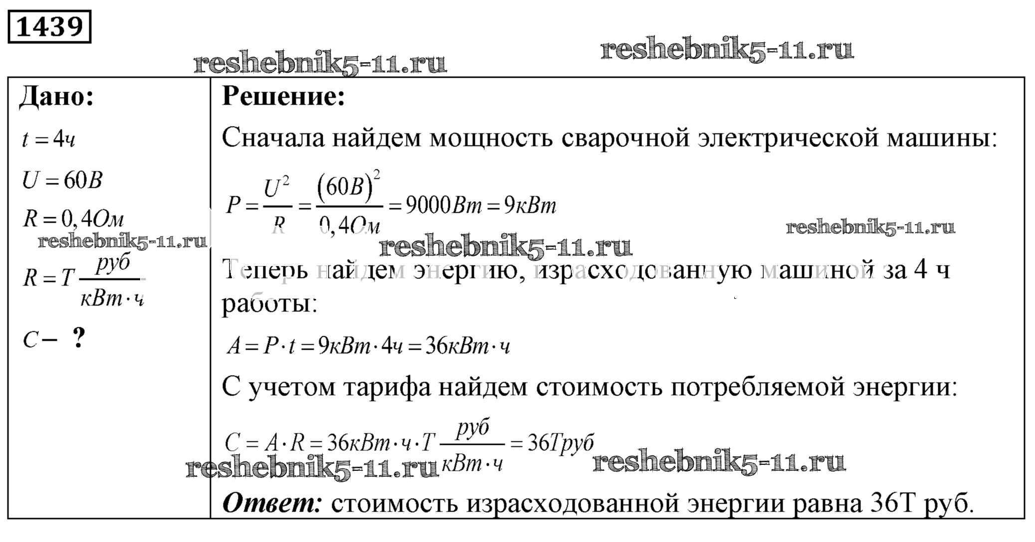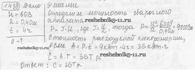 Готовая домашняя работа с ответами по Физике за 7, 8, 9 класс Лукашик, Иванова Сборник задач Просвещение 2011 ФГОС - Задания 1439