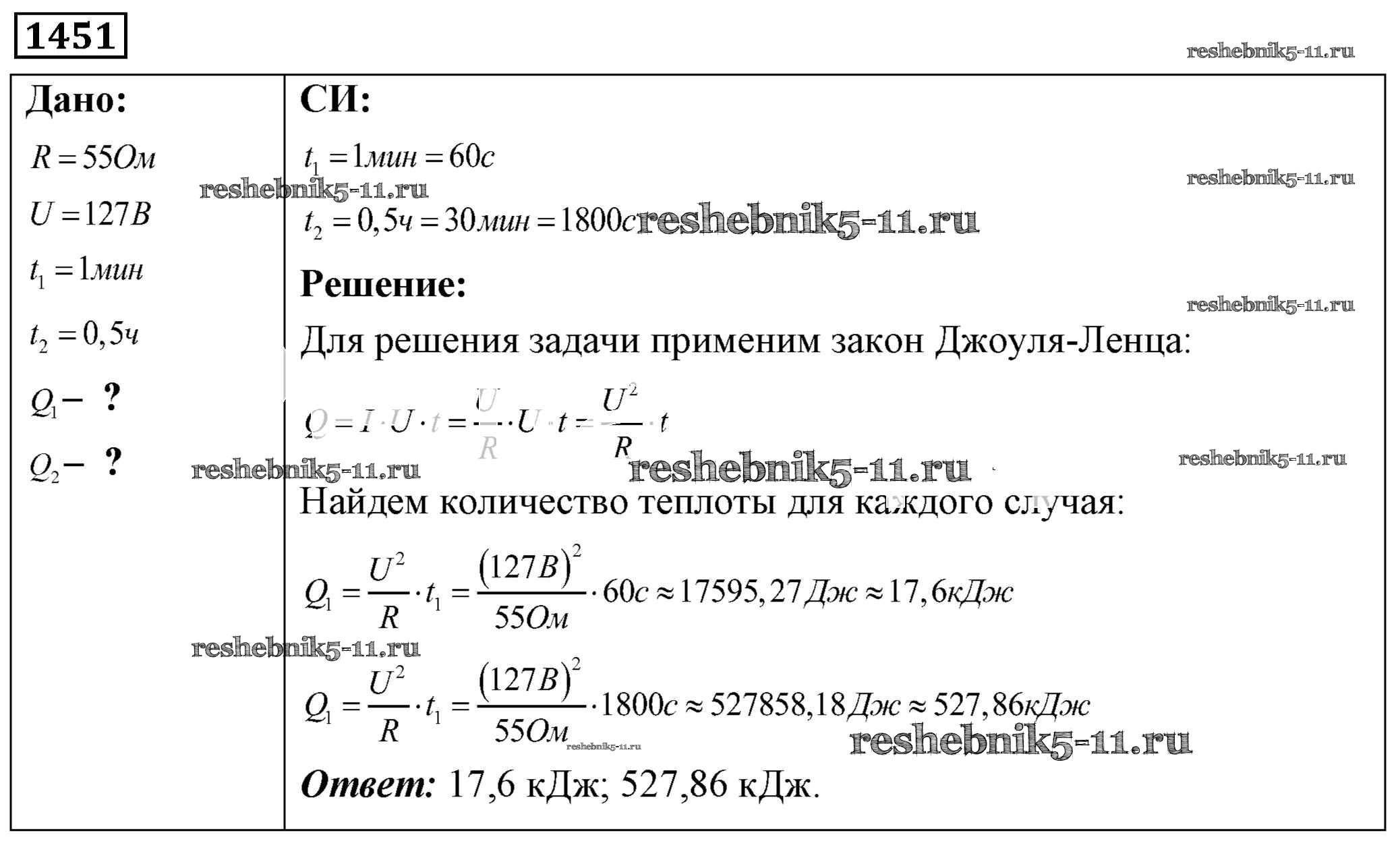 Готовая домашняя работа с ответами по Физике за 7, 8, 9 класс Лукашик, Иванова Сборник задач Просвещение 2011 ФГОС - Задания 1451