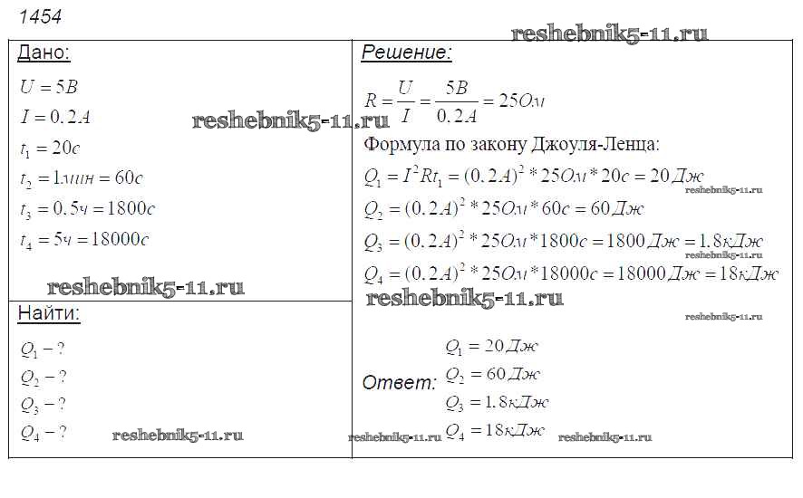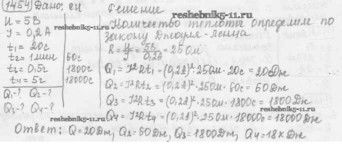 Готовая домашняя работа с ответами по Физике за 7, 8, 9 класс Лукашик, Иванова Сборник задач Просвещение 2011 ФГОС - Задания 1454