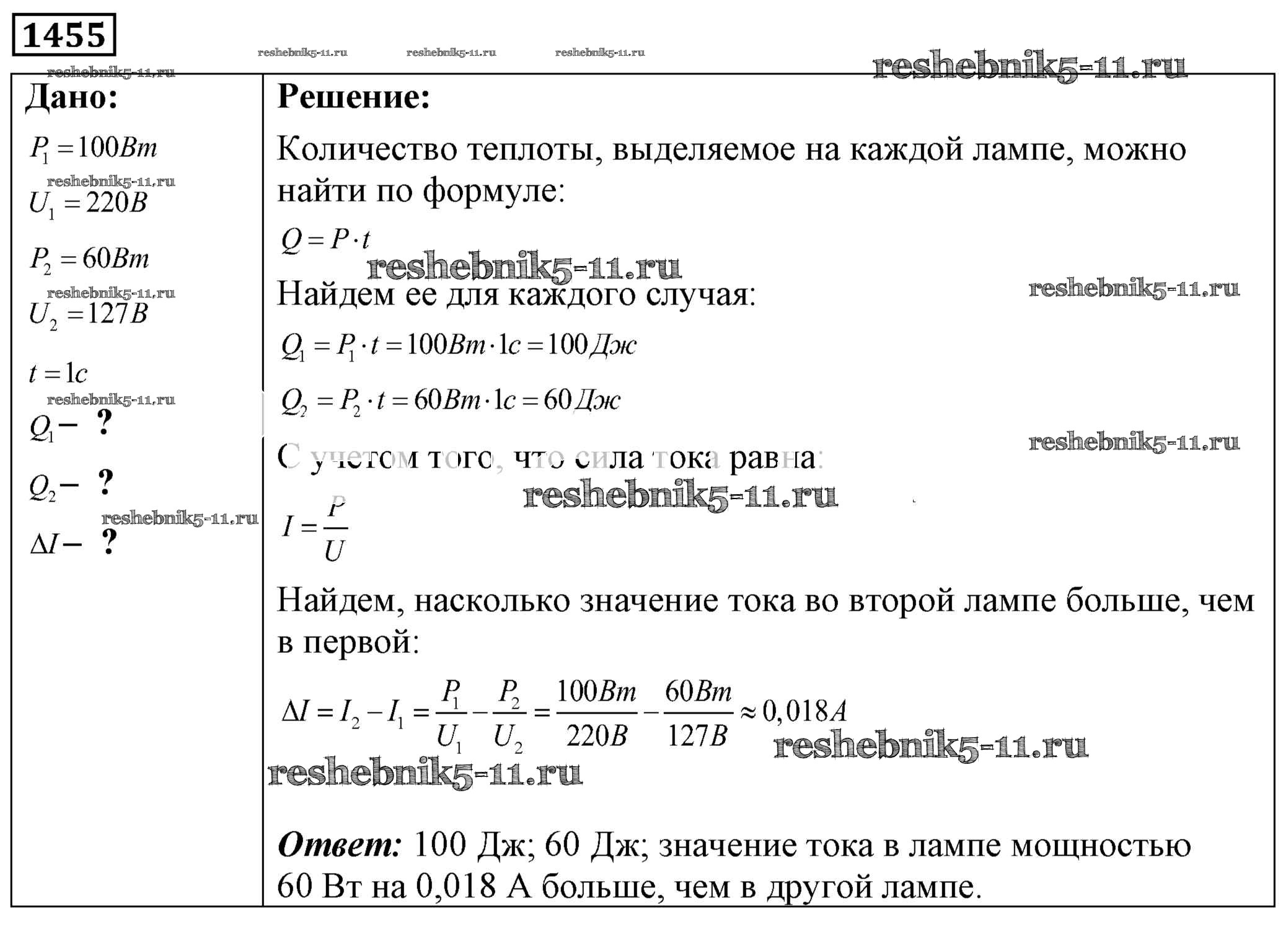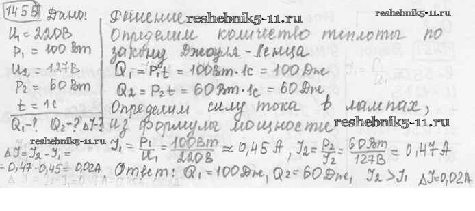 Готовая домашняя работа с ответами по Физике за 7, 8, 9 класс Лукашик, Иванова Сборник задач Просвещение 2011 ФГОС - Задания 1455