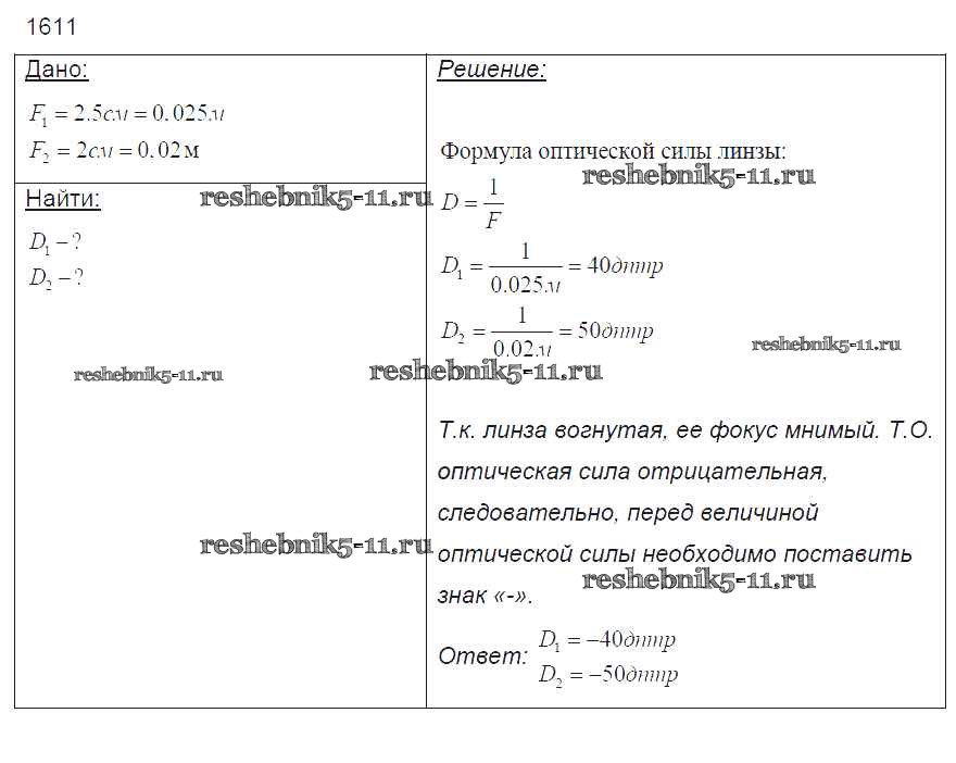Готовая домашняя работа с ответами по Физике за 7, 8, 9 класс Лукашик, Иванова Сборник задач Просвещение 2011 ФГОС - Задания 1611