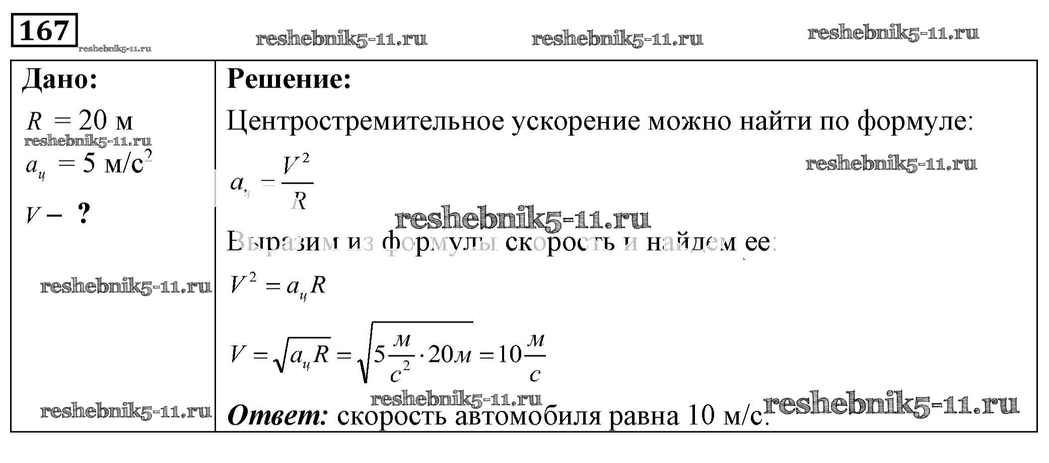 Готовая домашняя работа с ответами по Физике за 7, 8, 9 класс Лукашик, Иванова Сборник задач Просвещение 2011 ФГОС - Задания 167