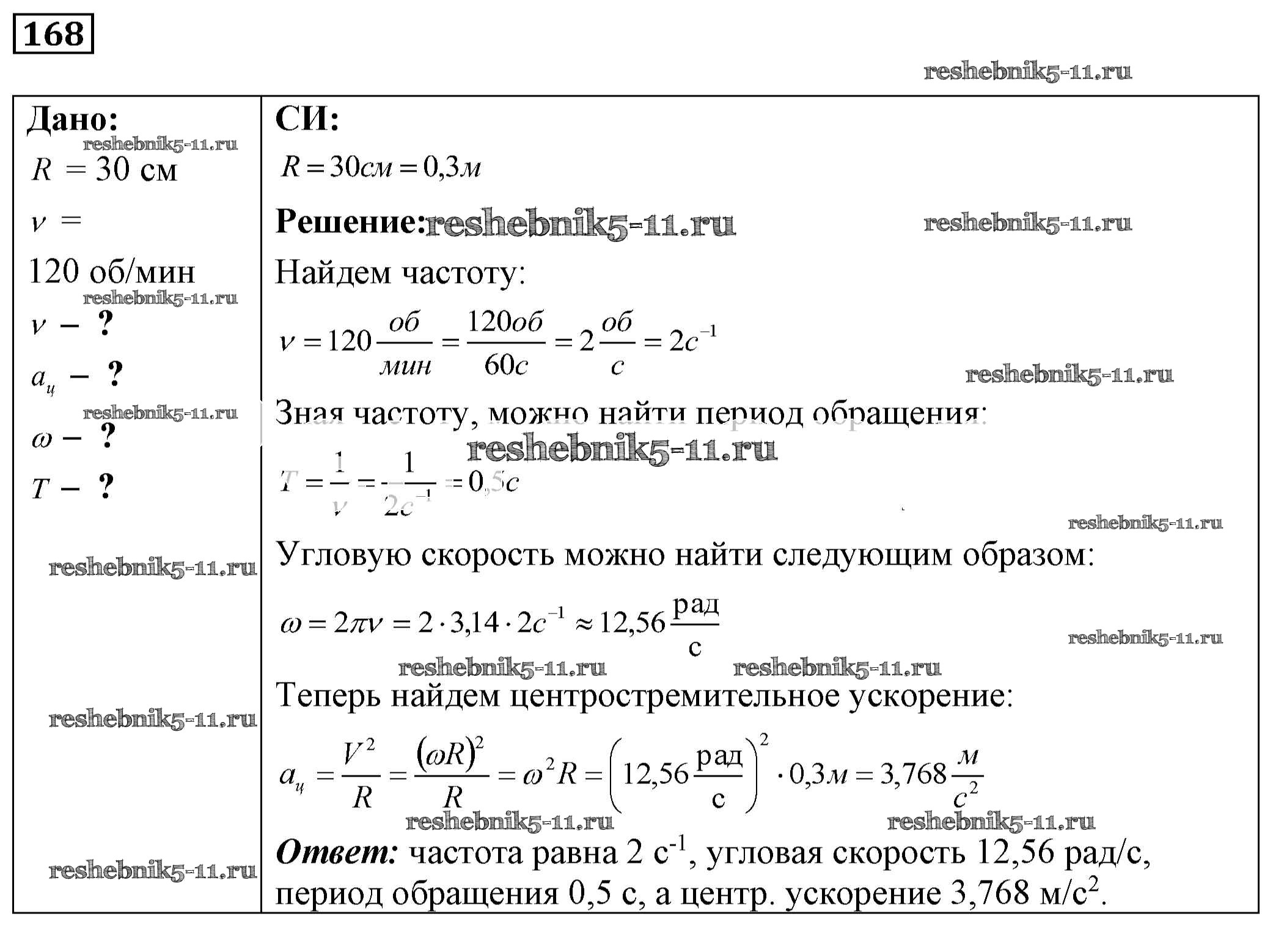Готовая домашняя работа с ответами по Физике за 7, 8, 9 класс Лукашик, Иванова Сборник задач Просвещение 2011 ФГОС - Задания 168