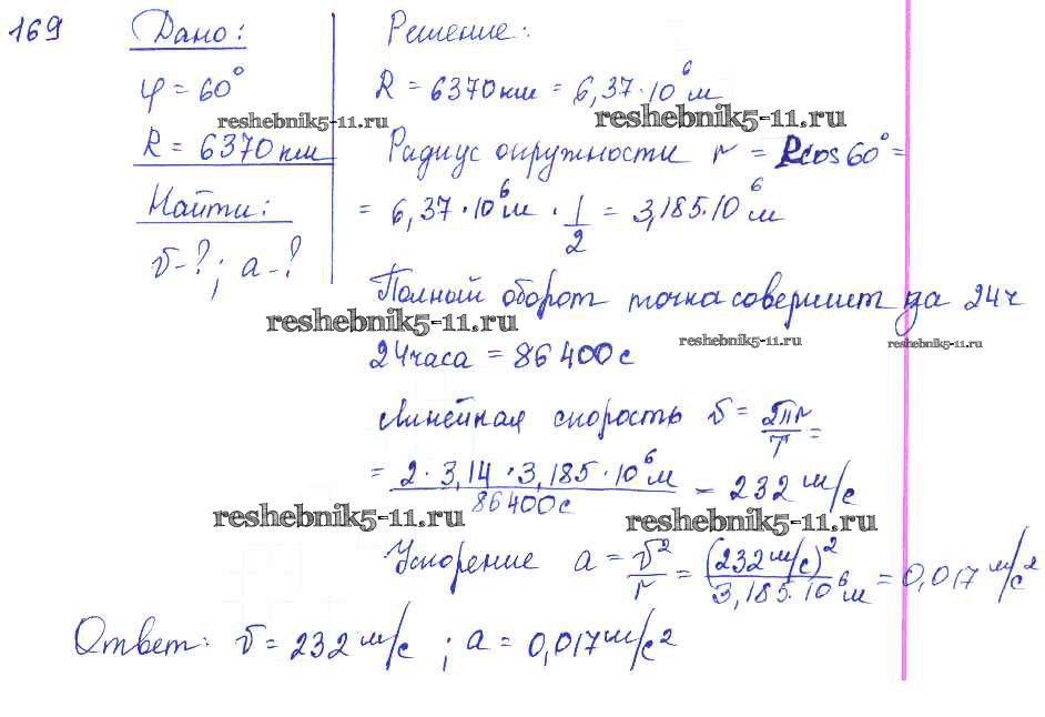 Готовая домашняя работа с ответами по Физике за 7, 8, 9 класс Лукашик, Иванова Сборник задач Просвещение 2011 ФГОС - Задания 169