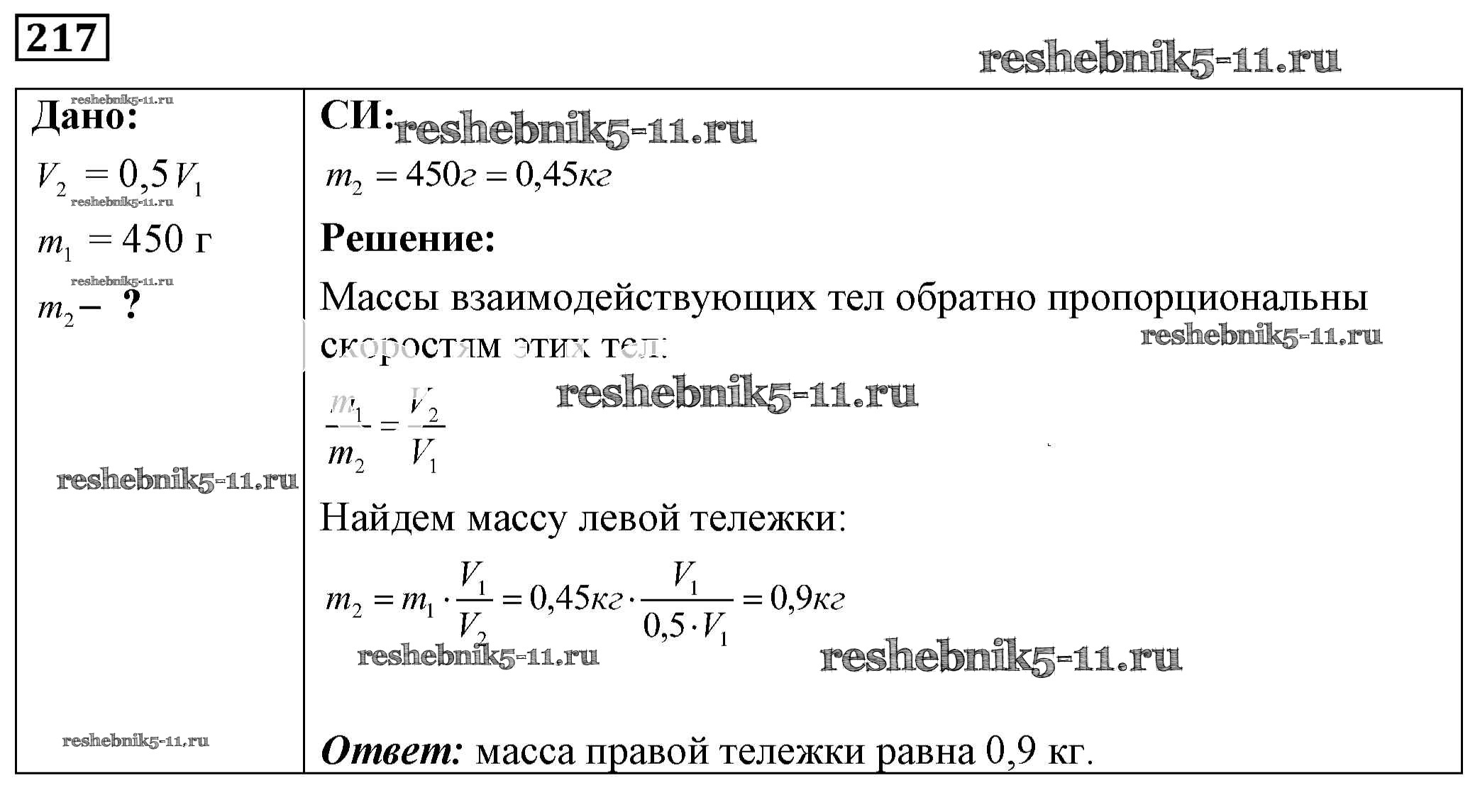 Готовая домашняя работа с ответами по Физике за 7, 8, 9 класс Лукашик, Иванова Сборник задач Просвещение 2011 ФГОС - Задания 217