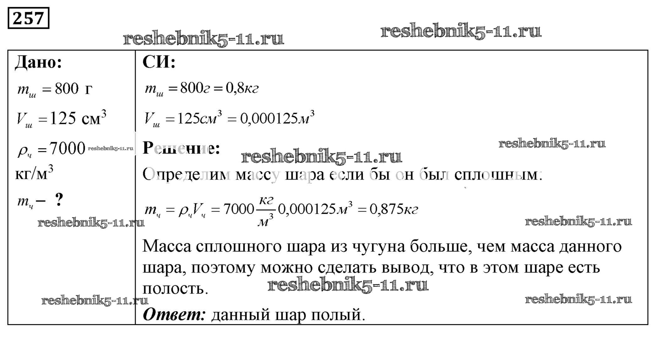 Готовая домашняя работа с ответами по Физике за 7, 8, 9 класс Лукашик, Иванова Сборник задач Просвещение 2011 ФГОС - Задания 257