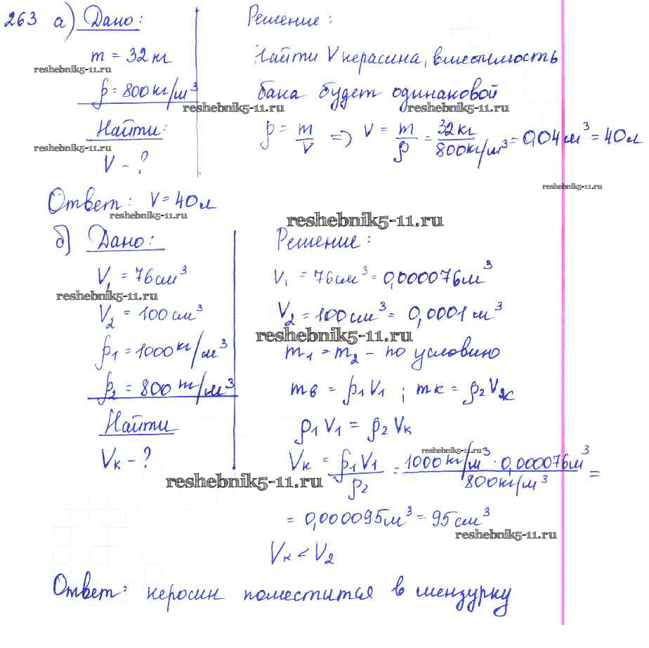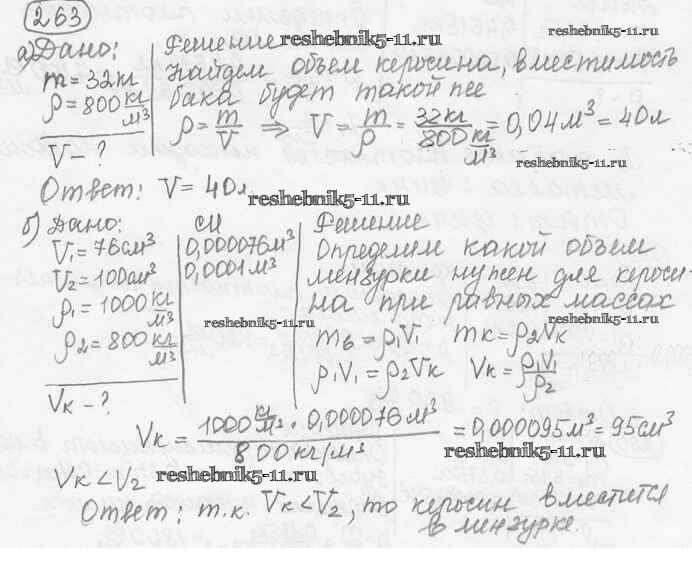 Готовая домашняя работа с ответами по Физике за 7, 8, 9 класс Лукашик, Иванова Сборник задач Просвещение 2011 ФГОС - Задания 263