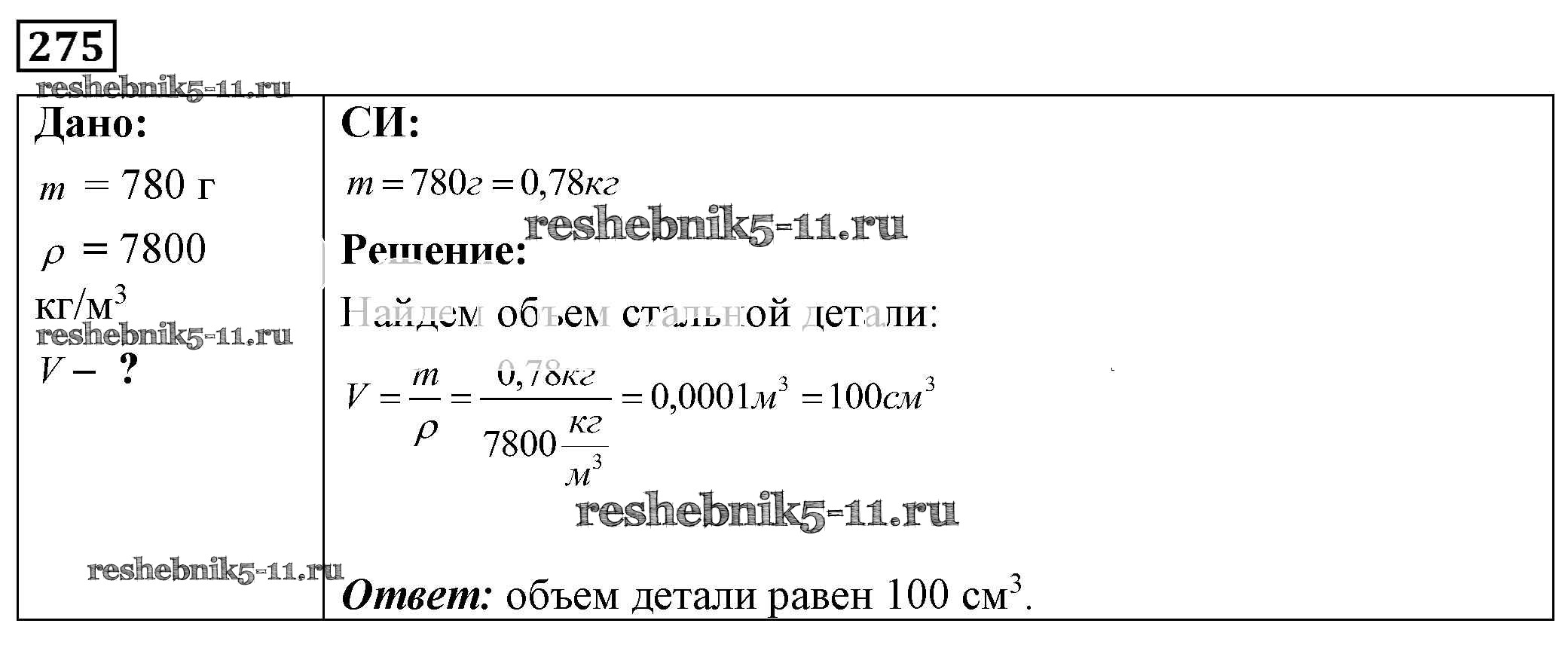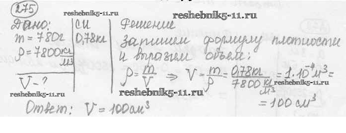 Готовая домашняя работа с ответами по Физике за 7, 8, 9 класс Лукашик, Иванова Сборник задач Просвещение 2011 ФГОС - Задания 275