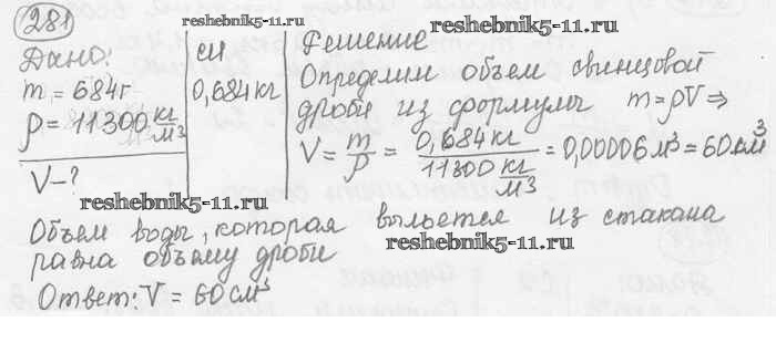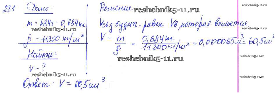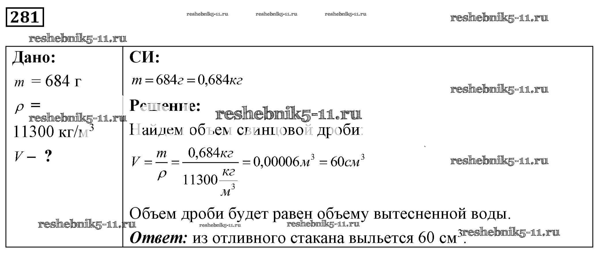 Готовая домашняя работа с ответами по Физике за 7, 8, 9 класс Лукашик, Иванова Сборник задач Просвещение 2011 ФГОС - Задания 281
