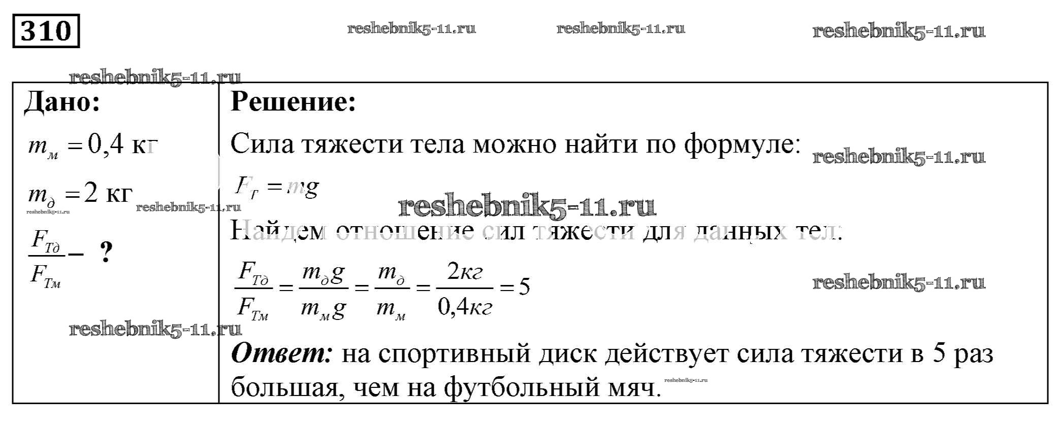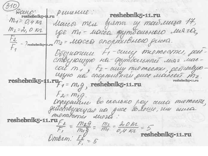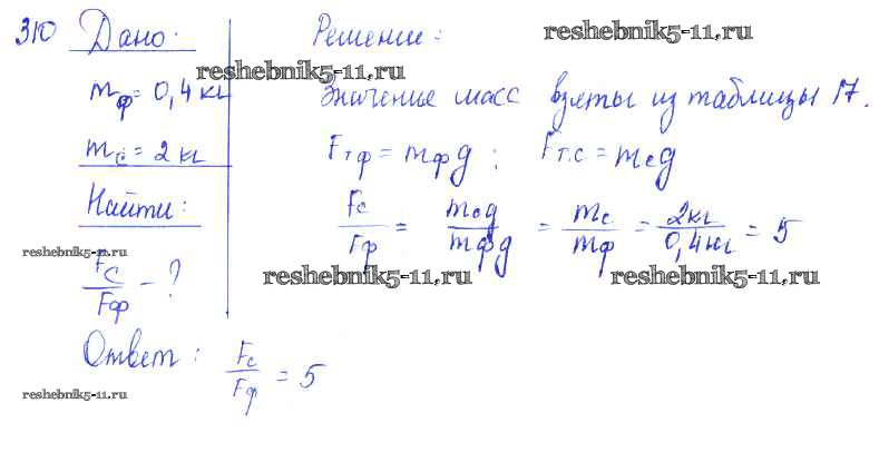 Готовая домашняя работа с ответами по Физике за 7, 8, 9 класс Лукашик, Иванова Сборник задач Просвещение 2011 ФГОС - Задания 310