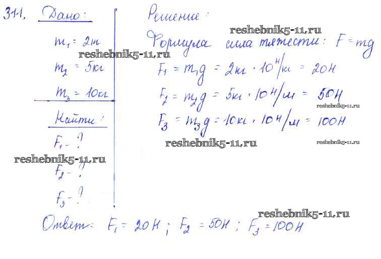Готовая домашняя работа с ответами по Физике за 7, 8, 9 класс Лукашик, Иванова Сборник задач Просвещение 2011 ФГОС - Задания 311
