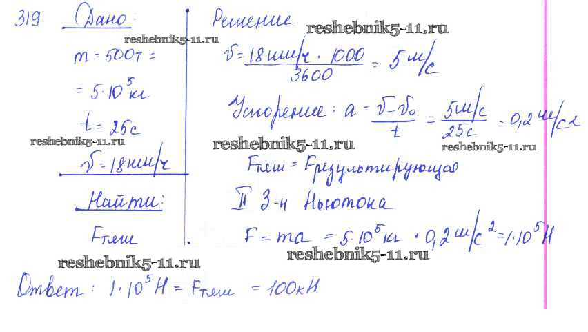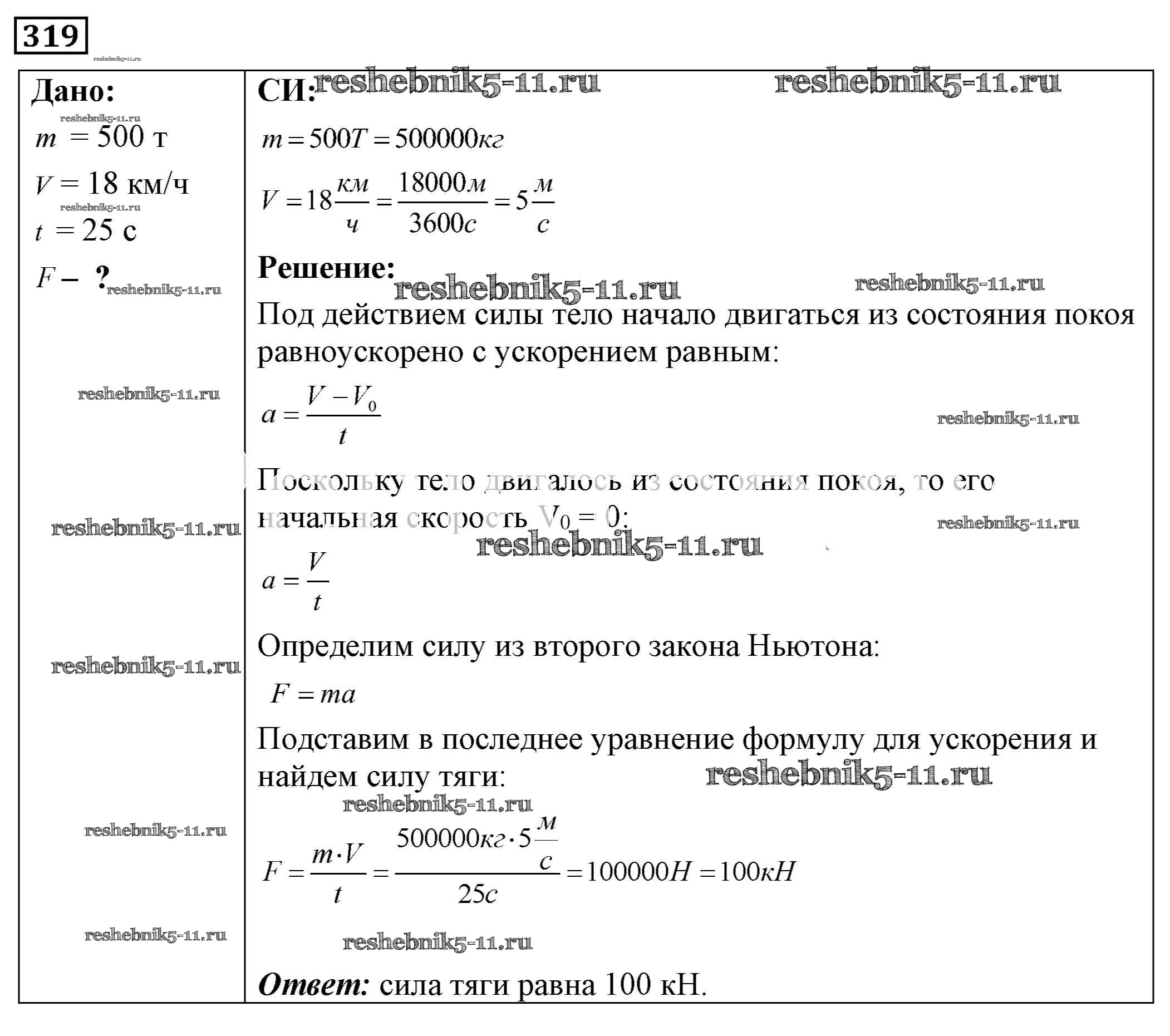 Готовая домашняя работа с ответами по Физике за 7, 8, 9 класс Лукашик, Иванова Сборник задач Просвещение 2011 ФГОС - Задания 319
