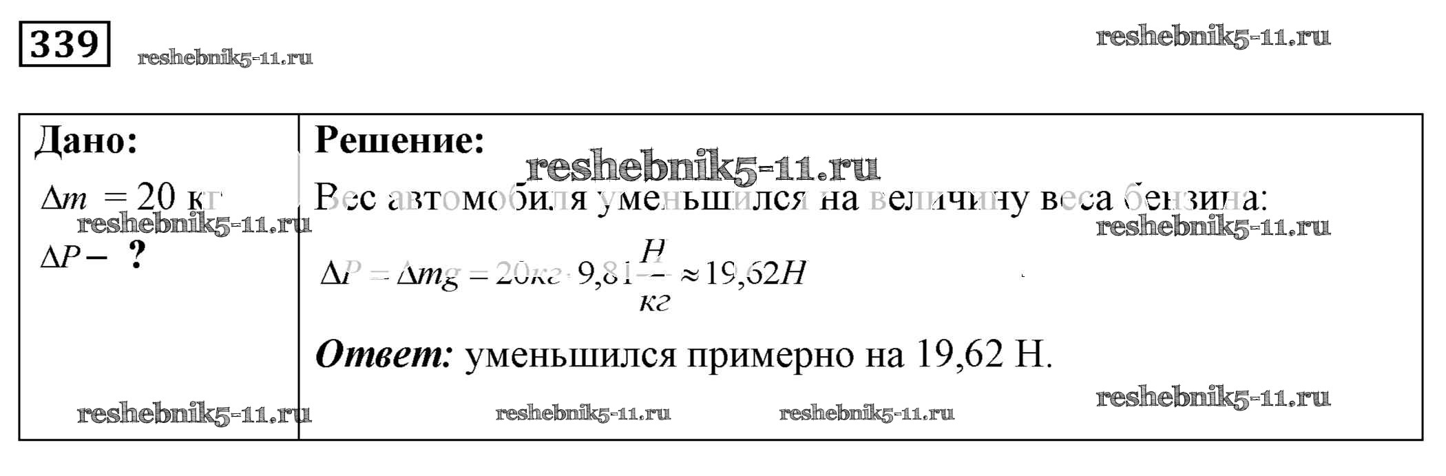 Готовая домашняя работа с ответами по Физике за 7, 8, 9 класс Лукашик, Иванова Сборник задач Просвещение 2011 ФГОС - Задания 339