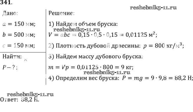 Готовая домашняя работа с ответами по Физике за 7, 8, 9 класс Лукашик, Иванова Сборник задач Просвещение 2011 ФГОС - Задания 341