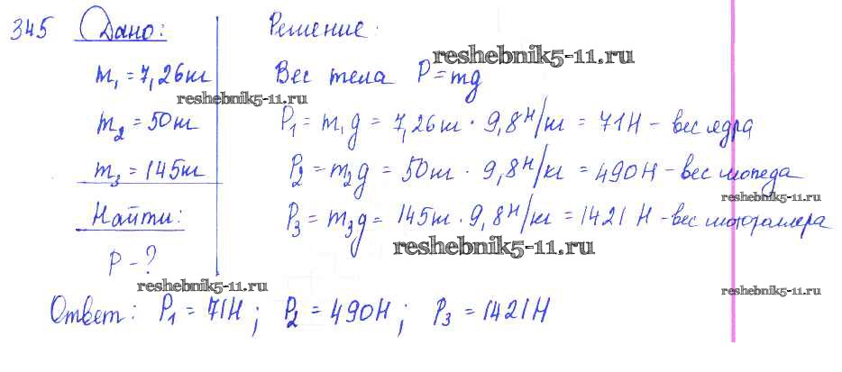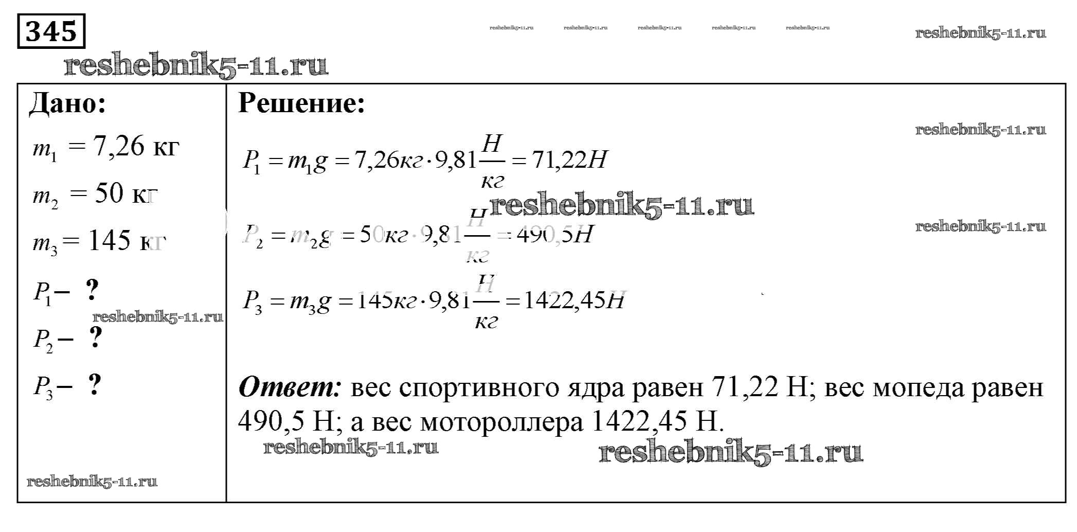 Готовая домашняя работа с ответами по Физике за 7, 8, 9 класс Лукашик, Иванова Сборник задач Просвещение 2011 ФГОС - Задания 345