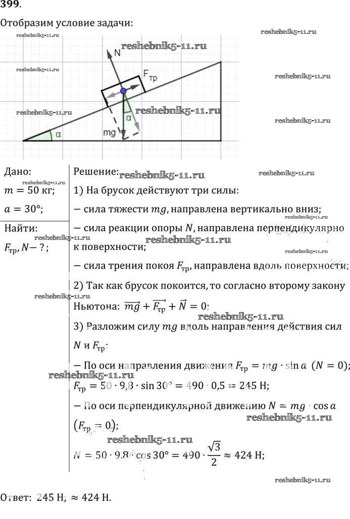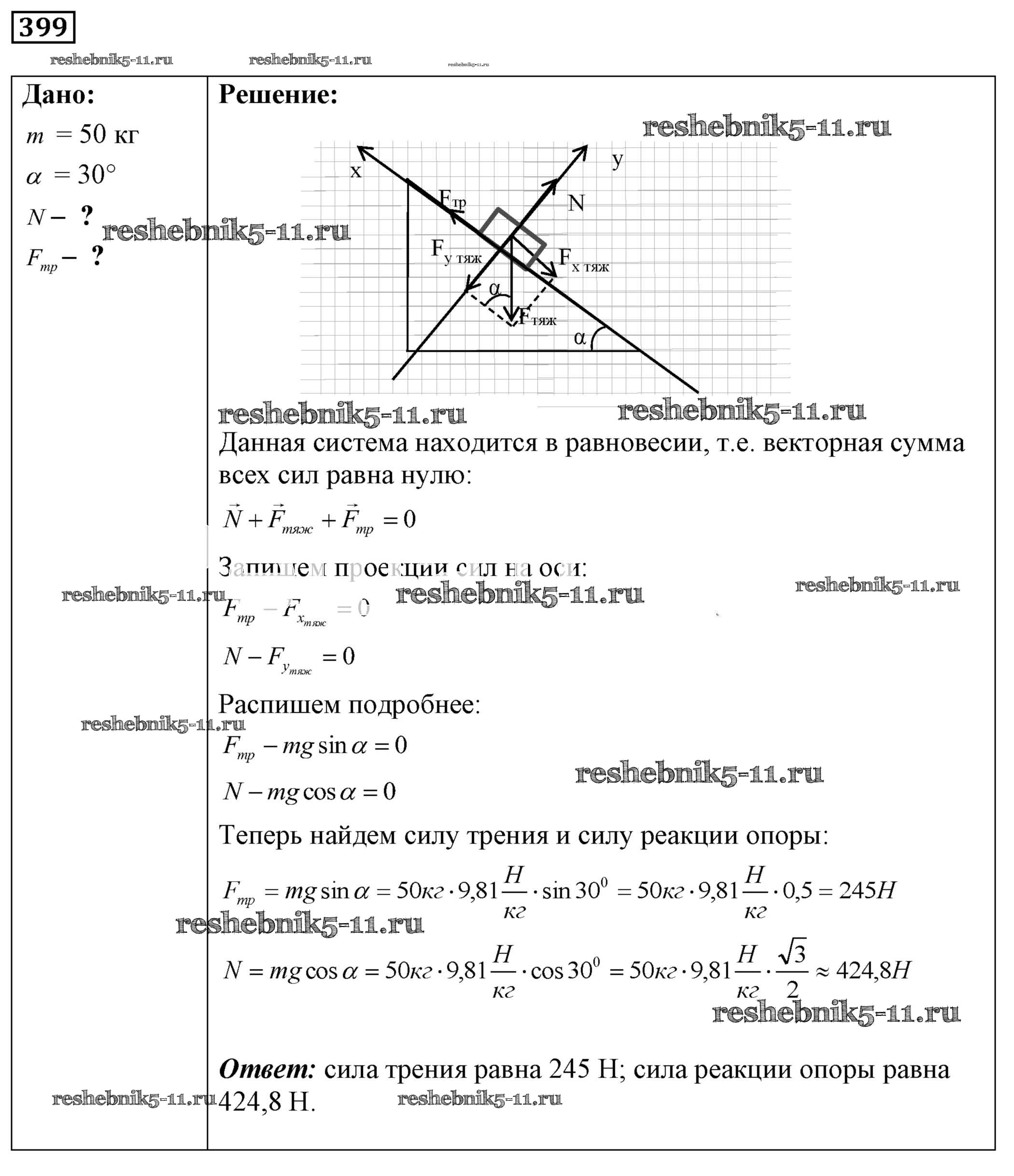 Готовая домашняя работа с ответами по Физике за 7, 8, 9 класс Лукашик, Иванова Сборник задач Просвещение 2011 ФГОС - Задания 399