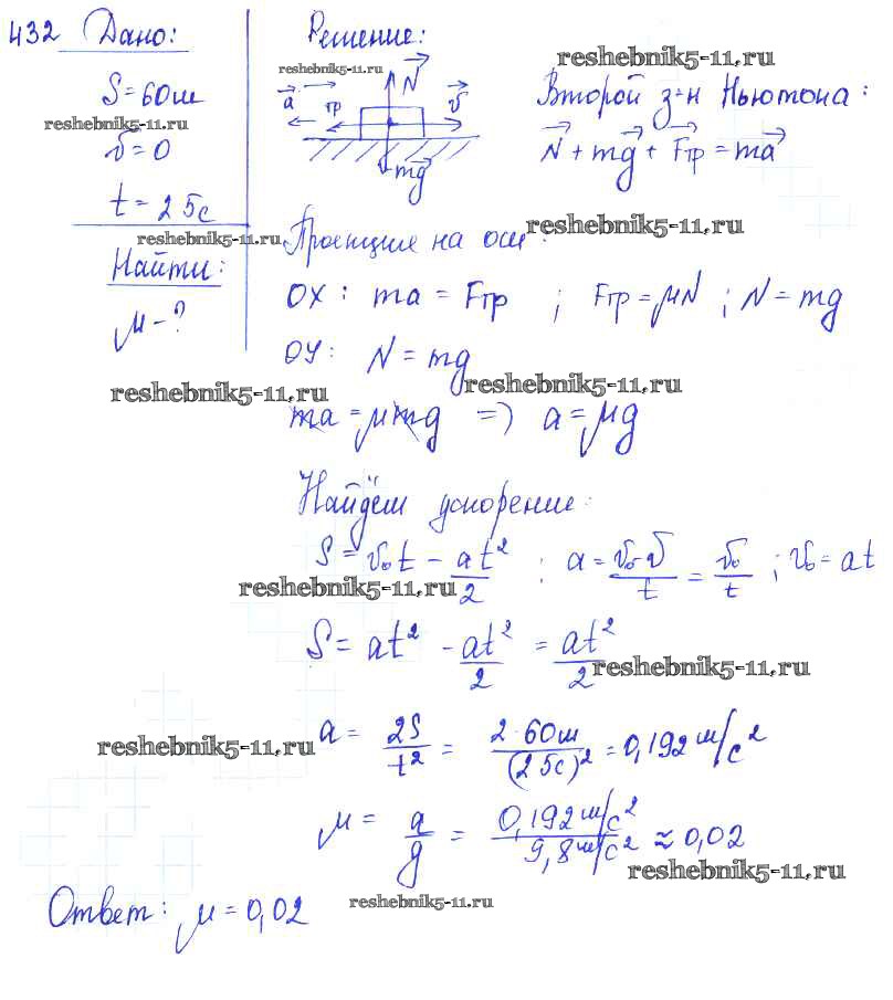 Готовая домашняя работа с ответами по Физике за 7, 8, 9 класс Лукашик, Иванова Сборник задач Просвещение 2011 ФГОС - Задания 432