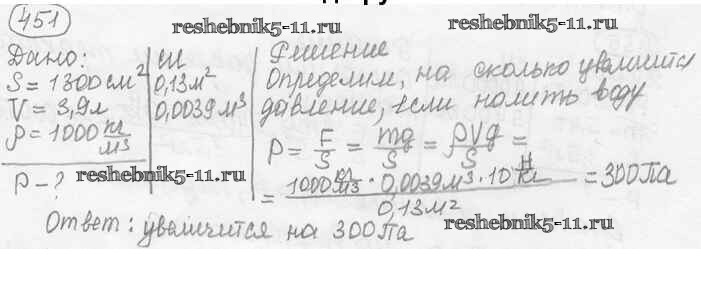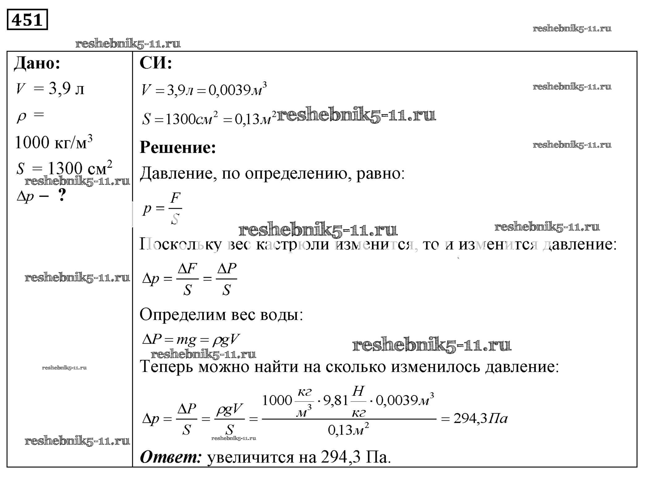 Готовая домашняя работа с ответами по Физике за 7, 8, 9 класс Лукашик, Иванова Сборник задач Просвещение 2011 ФГОС - Задания 451