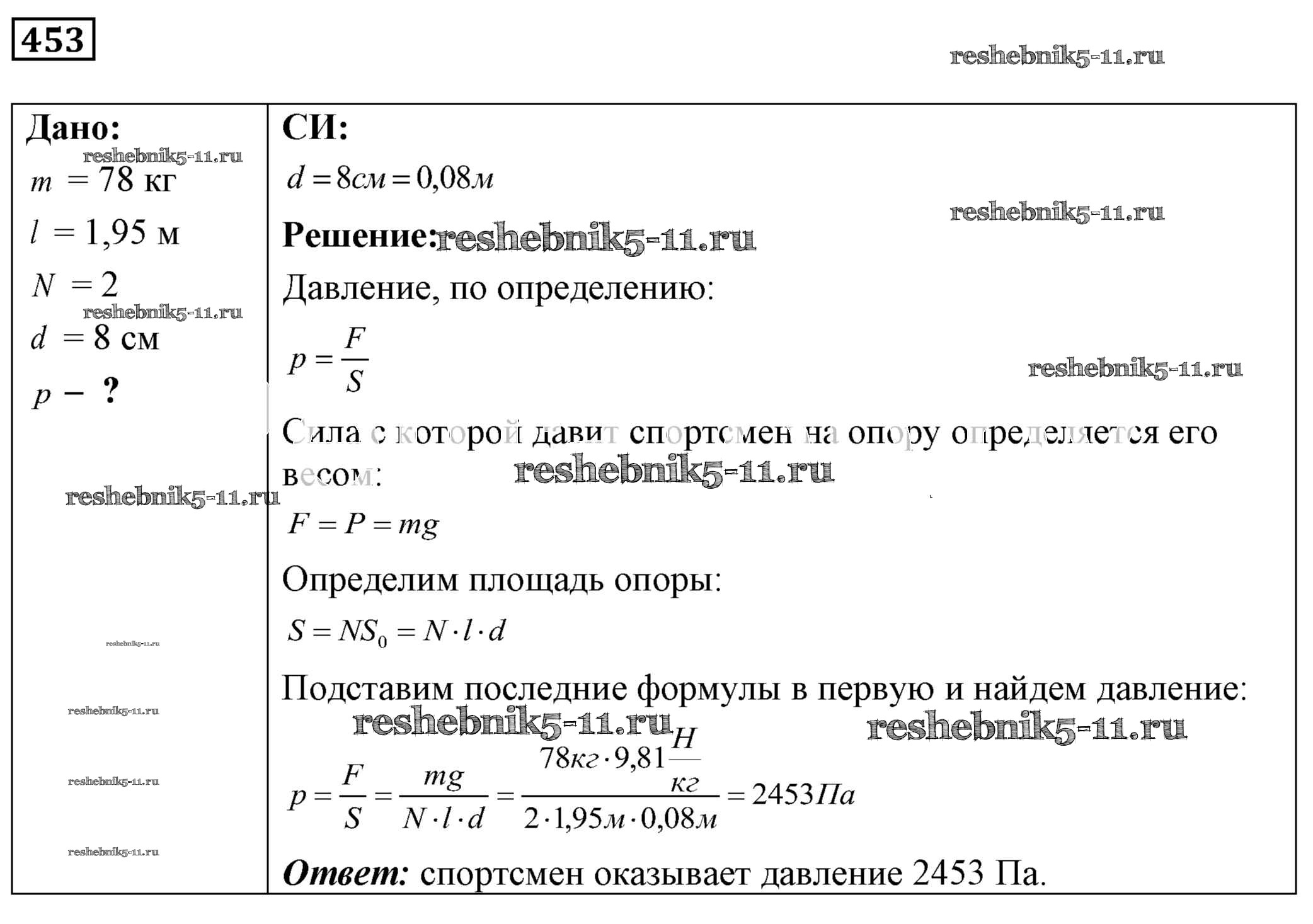 Готовая домашняя работа с ответами по Физике за 7, 8, 9 класс Лукашик, Иванова Сборник задач Просвещение 2011 ФГОС - Задания 453