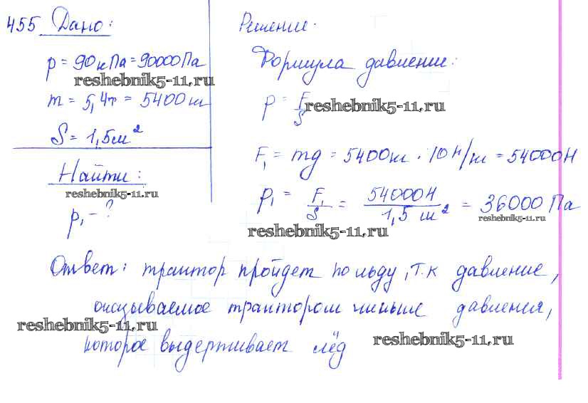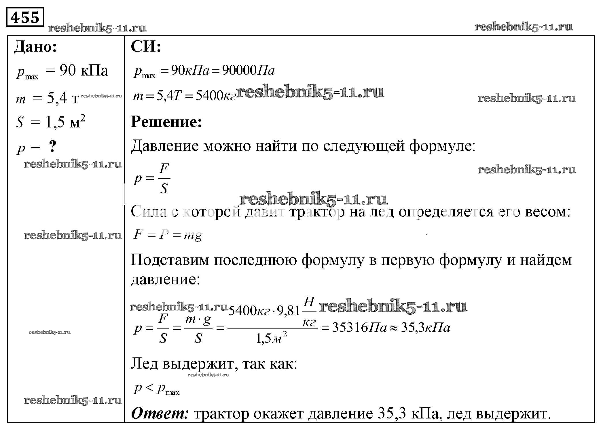 Готовая домашняя работа с ответами по Физике за 7, 8, 9 класс Лукашик, Иванова Сборник задач Просвещение 2011 ФГОС - Задания 455