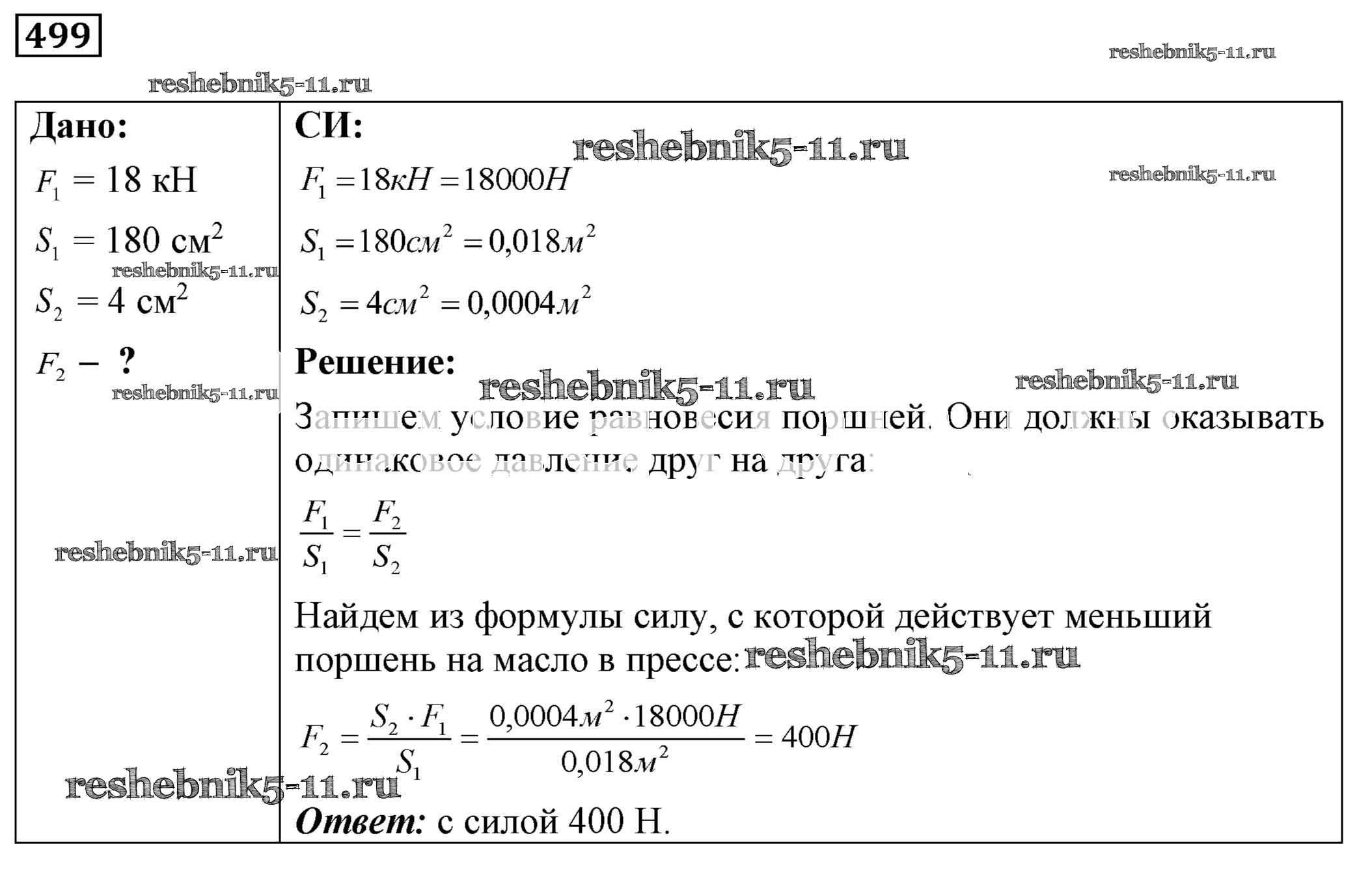 Готовая домашняя работа с ответами по Физике за 7, 8, 9 класс Лукашик, Иванова Сборник задач Просвещение 2011 ФГОС - Задания 499
