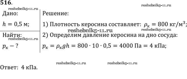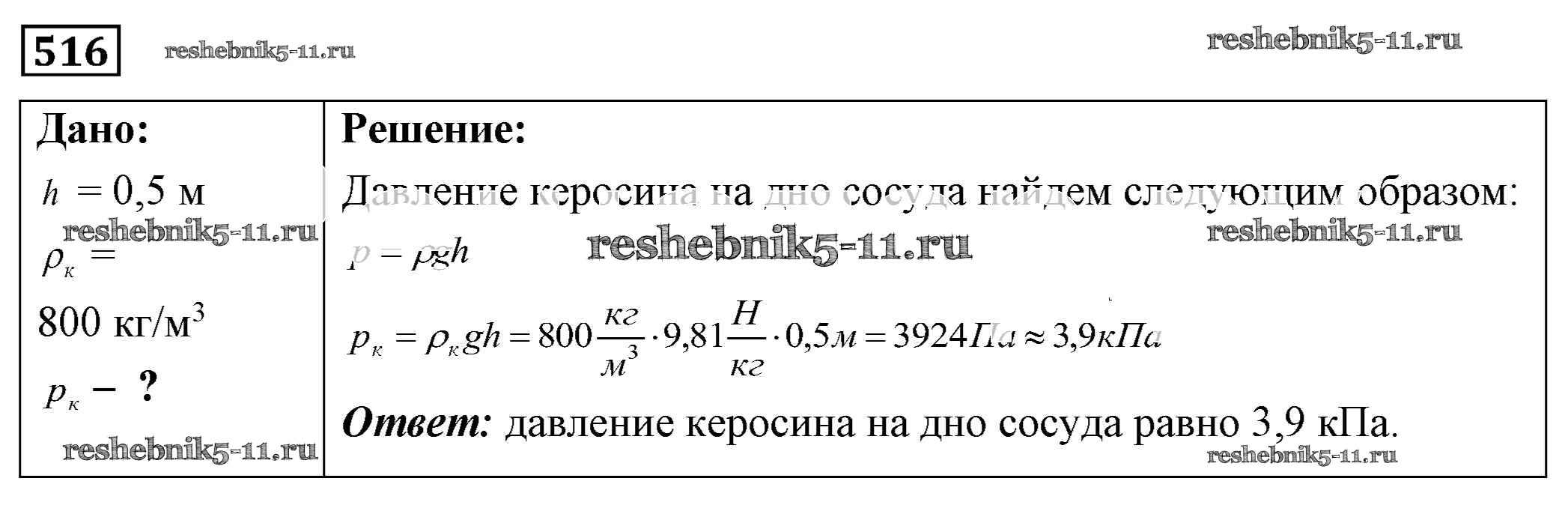 Готовая домашняя работа с ответами по Физике за 7, 8, 9 класс Лукашик, Иванова Сборник задач Просвещение 2011 ФГОС - Задания 516