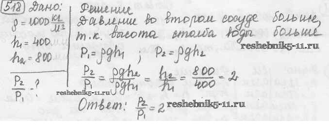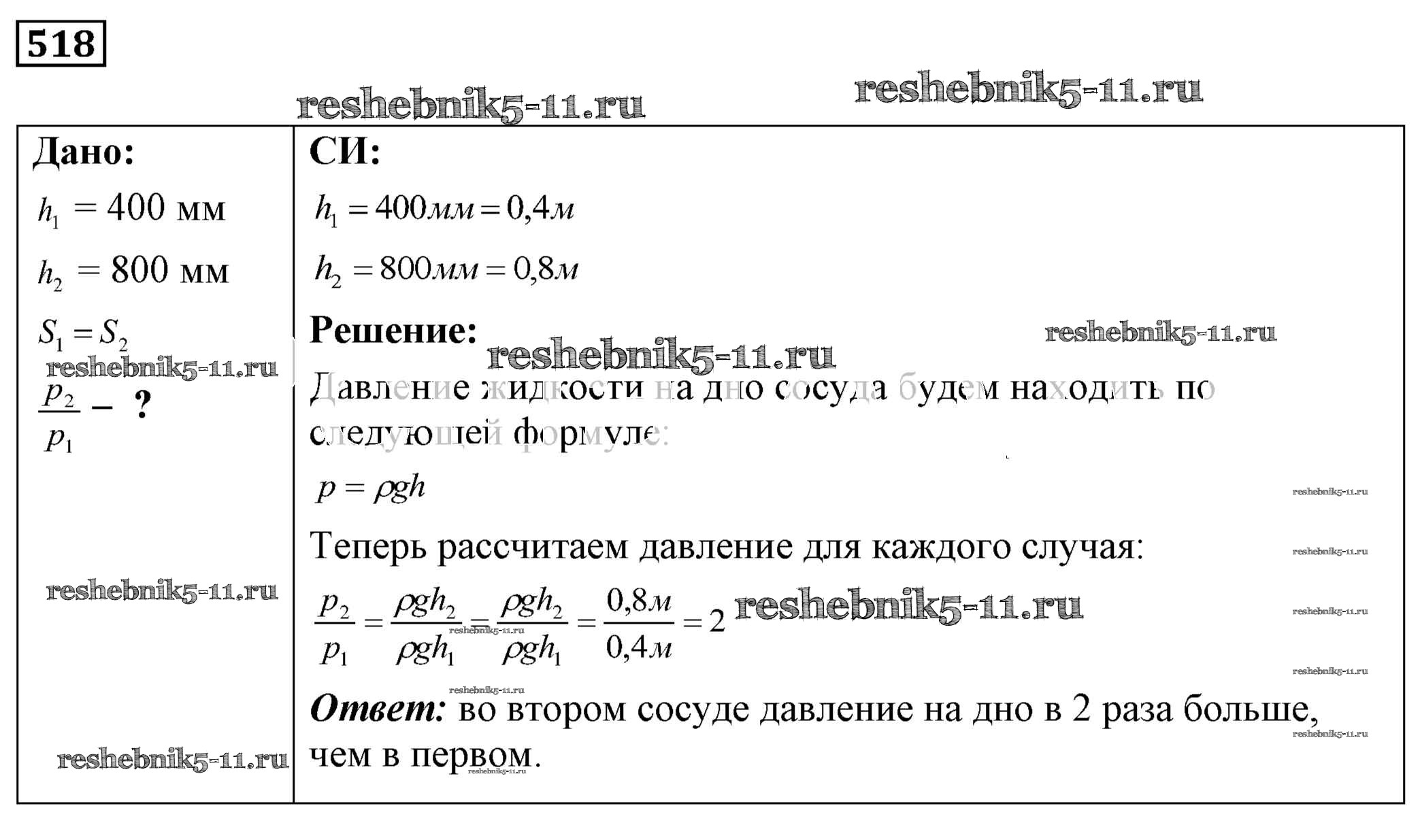 Готовая домашняя работа с ответами по Физике за 7, 8, 9 класс Лукашик, Иванова Сборник задач Просвещение 2011 ФГОС - Задания 518