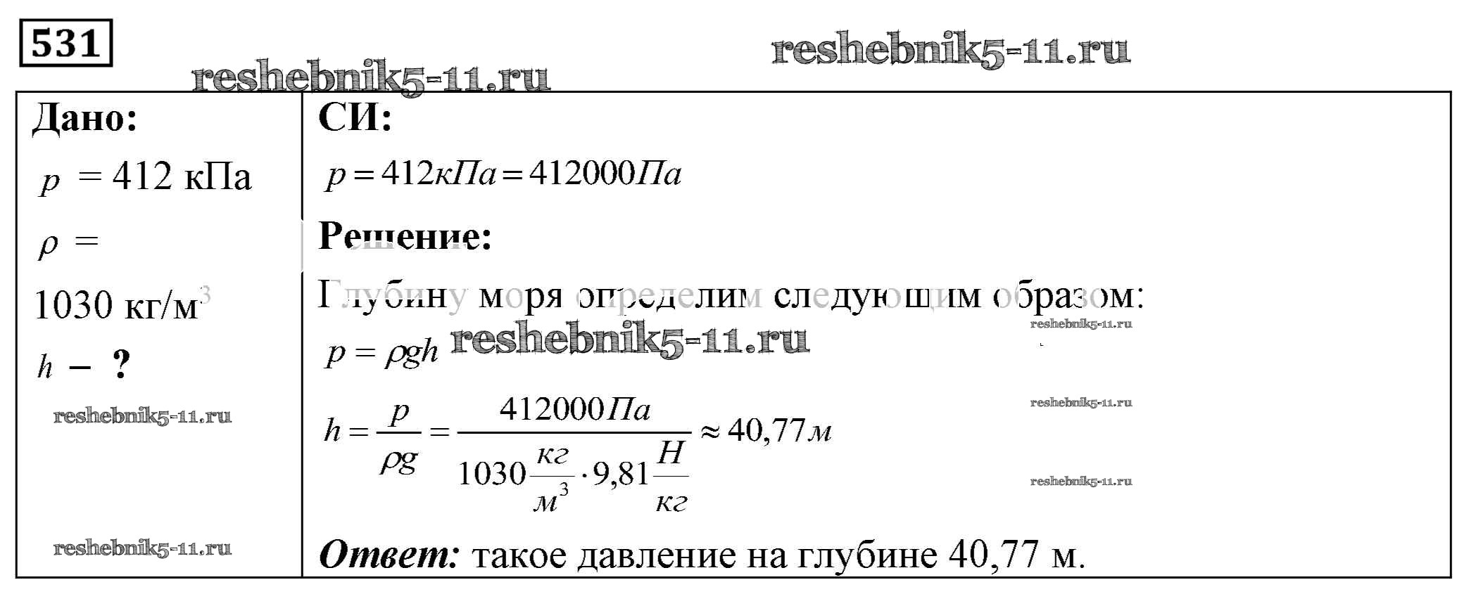 Готовая домашняя работа с ответами по Физике за 7, 8, 9 класс Лукашик, Иванова Сборник задач Просвещение 2011 ФГОС - Задания 531