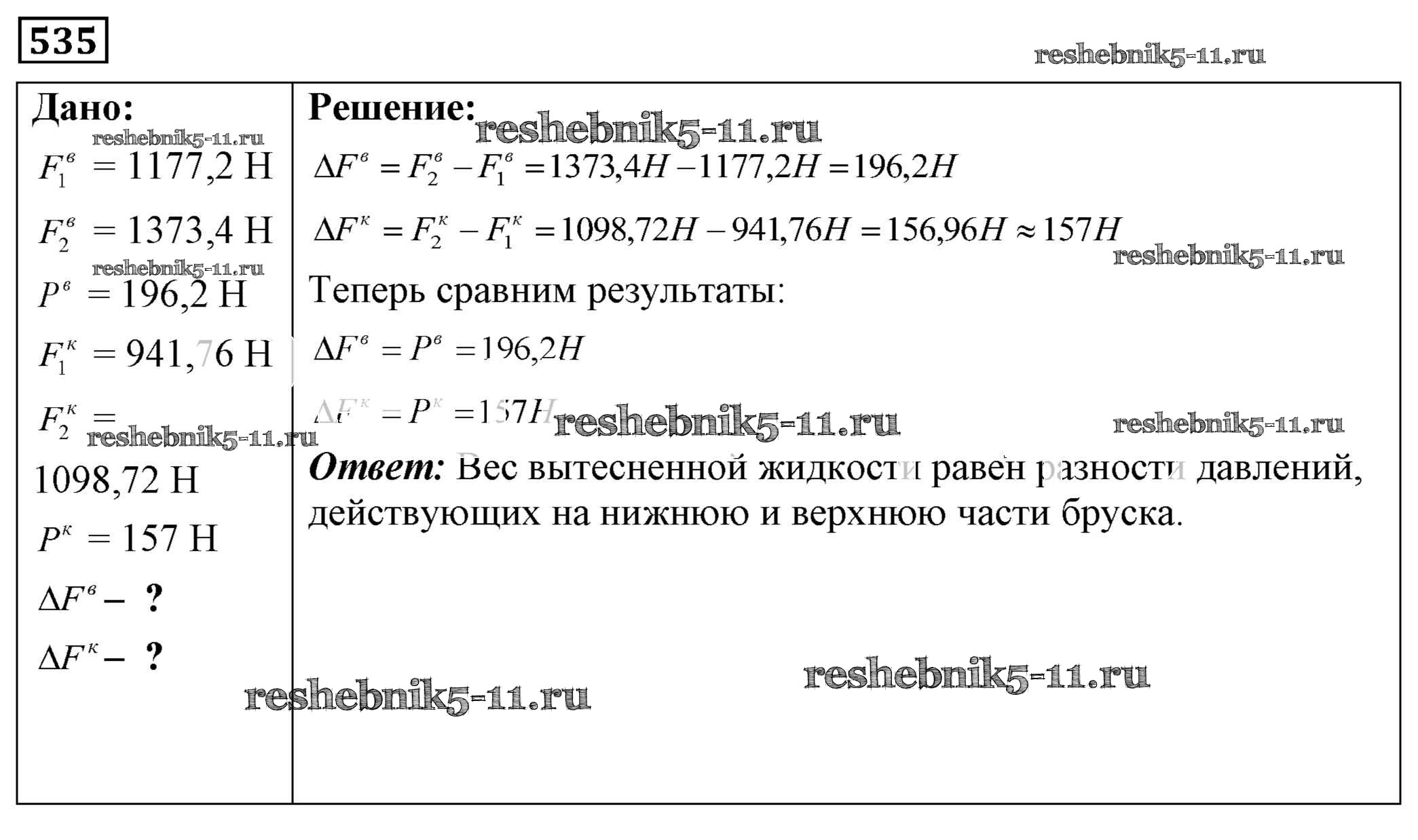 Готовая домашняя работа с ответами по Физике за 7, 8, 9 класс Лукашик, Иванова Сборник задач Просвещение 2011 ФГОС - Задания 535