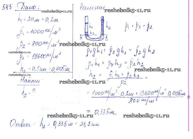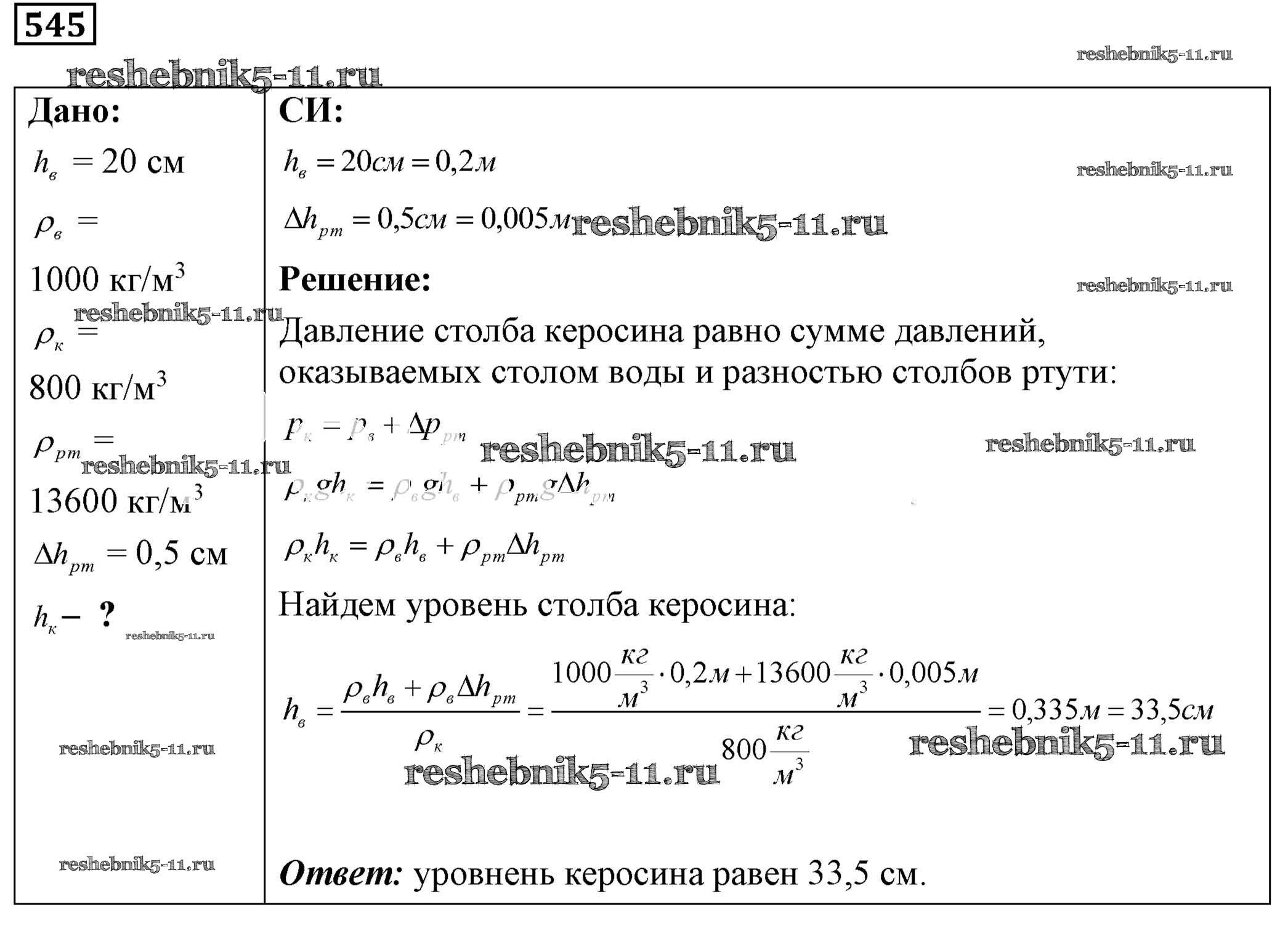 Готовая домашняя работа с ответами по Физике за 7, 8, 9 класс Лукашик, Иванова Сборник задач Просвещение 2011 ФГОС - Задания 545