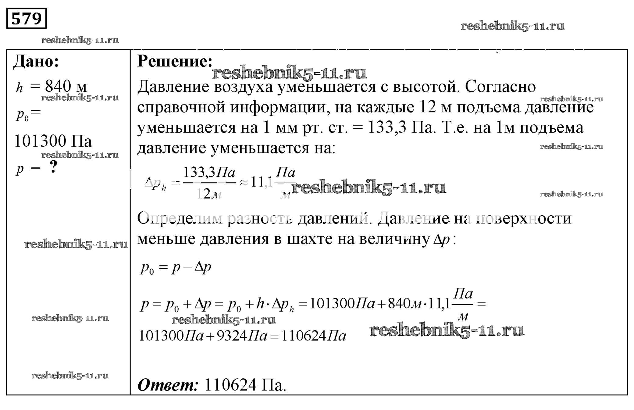 Готовая домашняя работа с ответами по Физике за 7, 8, 9 класс Лукашик, Иванова Сборник задач Просвещение 2011 ФГОС - Задания 579
