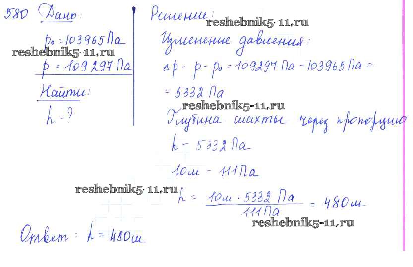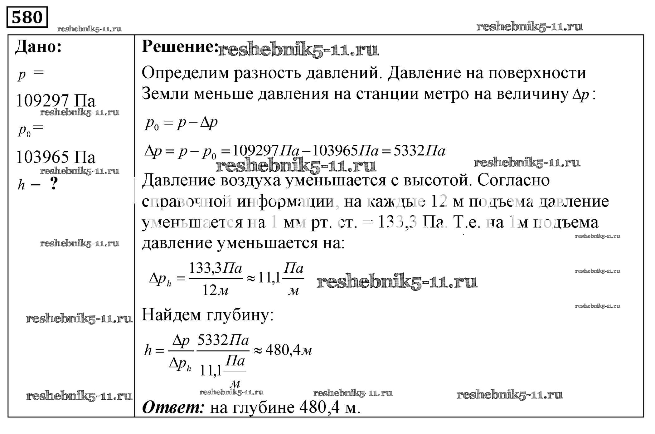Готовая домашняя работа с ответами по Физике за 7, 8, 9 класс Лукашик, Иванова Сборник задач Просвещение 2011 ФГОС - Задания 580