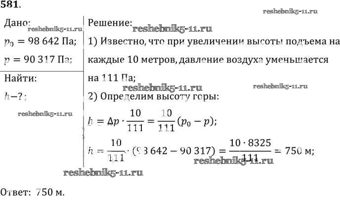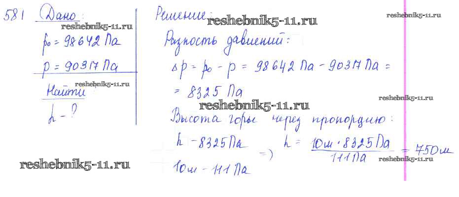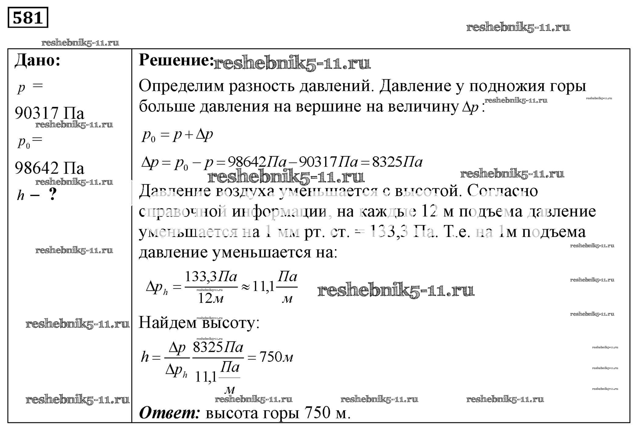 Готовая домашняя работа с ответами по Физике за 7, 8, 9 класс Лукашик, Иванова Сборник задач Просвещение 2011 ФГОС - Задания 581