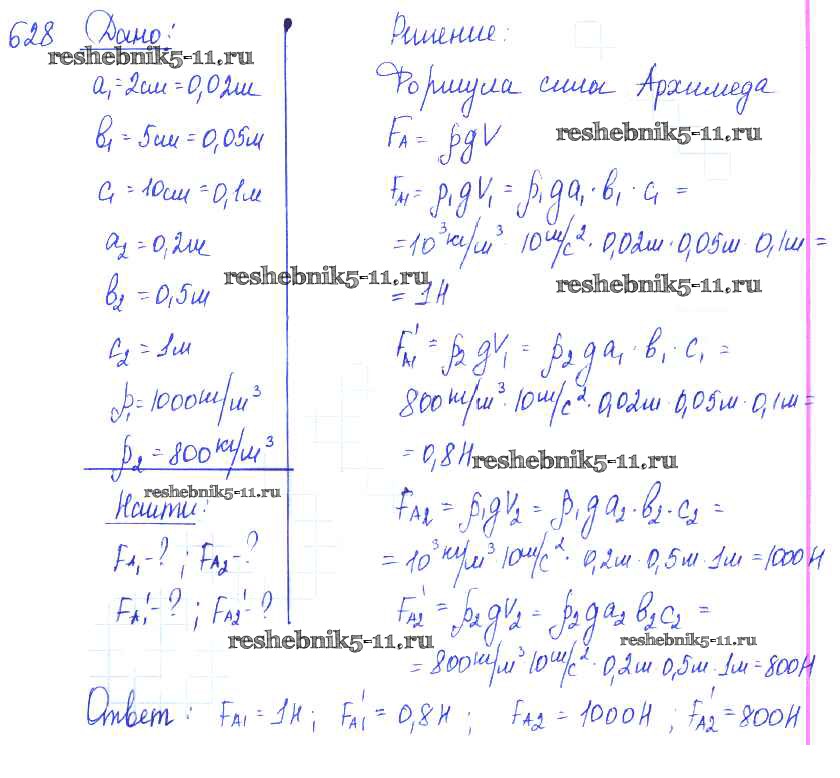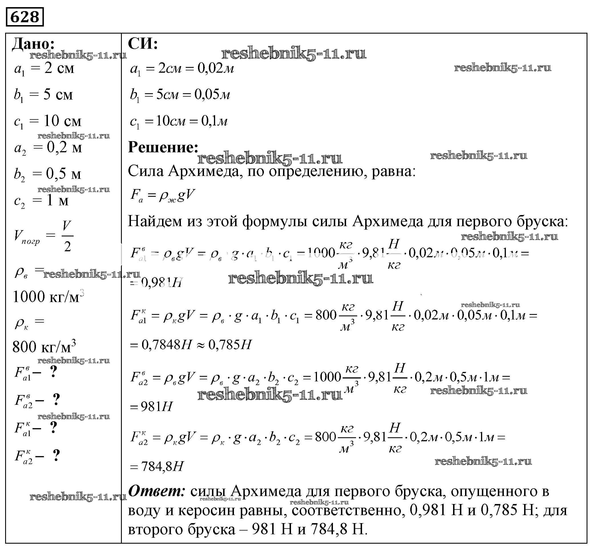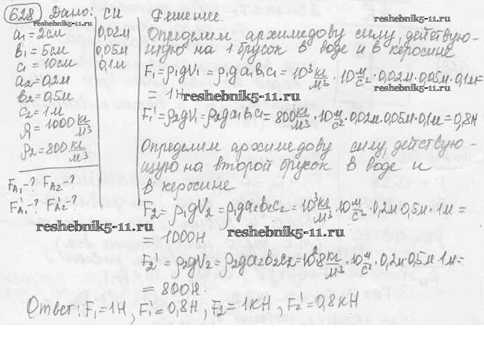 Готовая домашняя работа с ответами по Физике за 7, 8, 9 класс Лукашик, Иванова Сборник задач Просвещение 2011 ФГОС - Задания 628