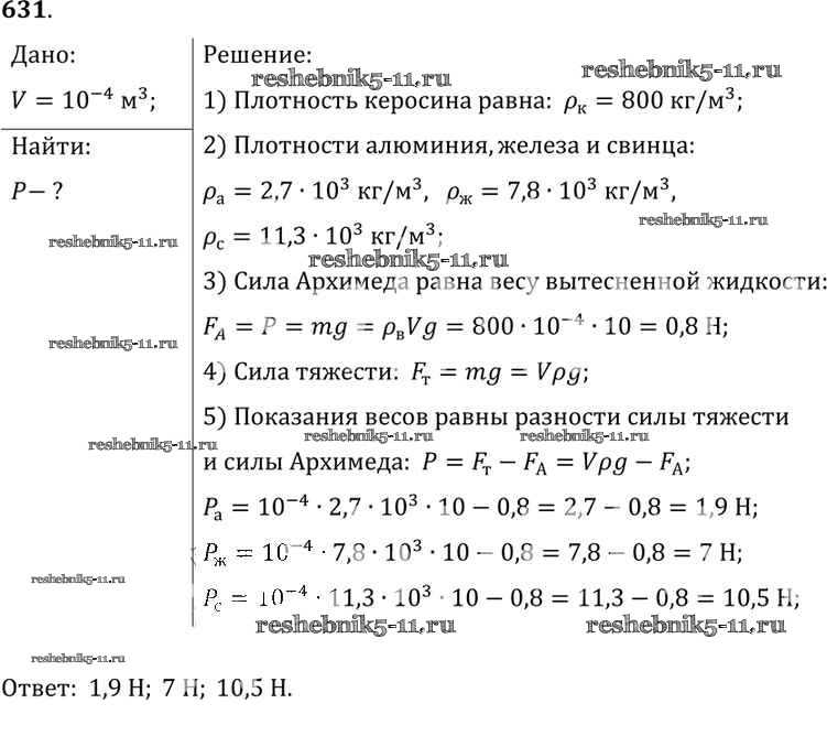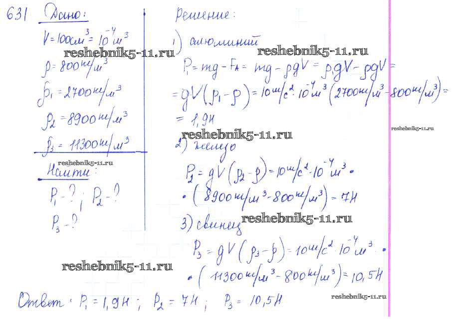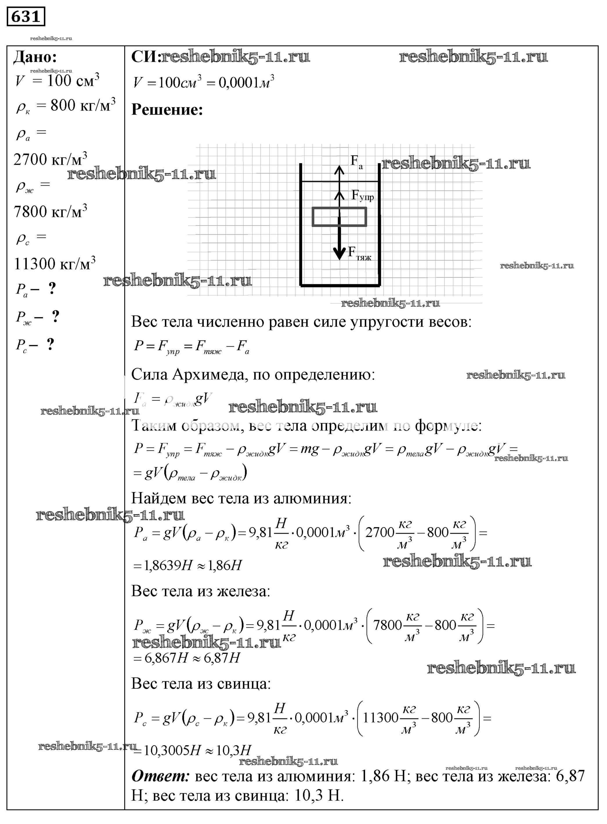 Готовая домашняя работа с ответами по Физике за 7, 8, 9 класс Лукашик, Иванова Сборник задач Просвещение 2011 ФГОС - Задания 631