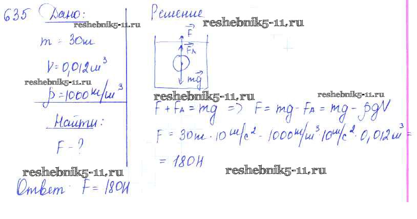 Готовая домашняя работа с ответами по Физике за 7, 8, 9 класс Лукашик, Иванова Сборник задач Просвещение 2011 ФГОС - Задания 635