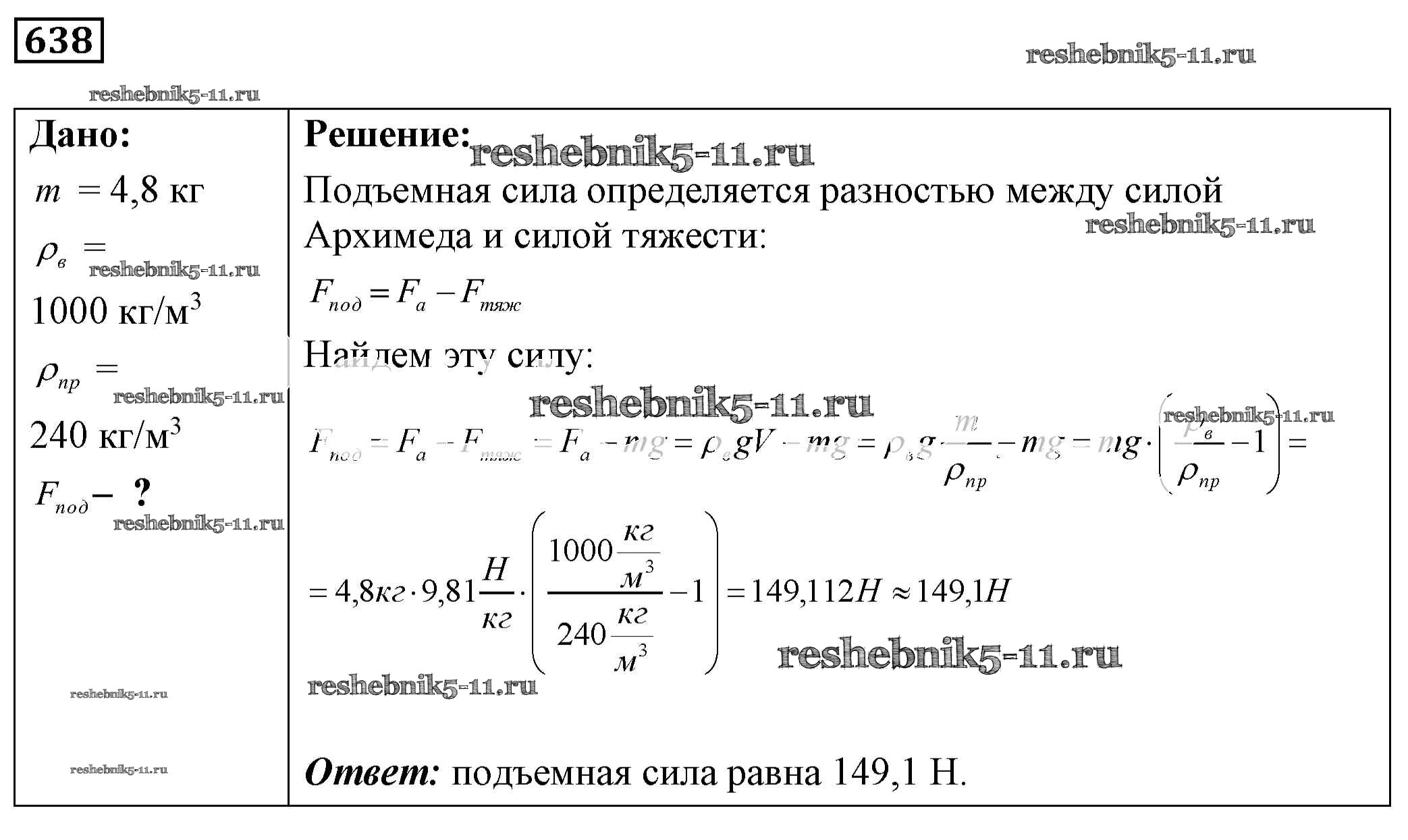 Готовая домашняя работа с ответами по Физике за 7, 8, 9 класс Лукашик, Иванова Сборник задач Просвещение 2011 ФГОС - Задания 638