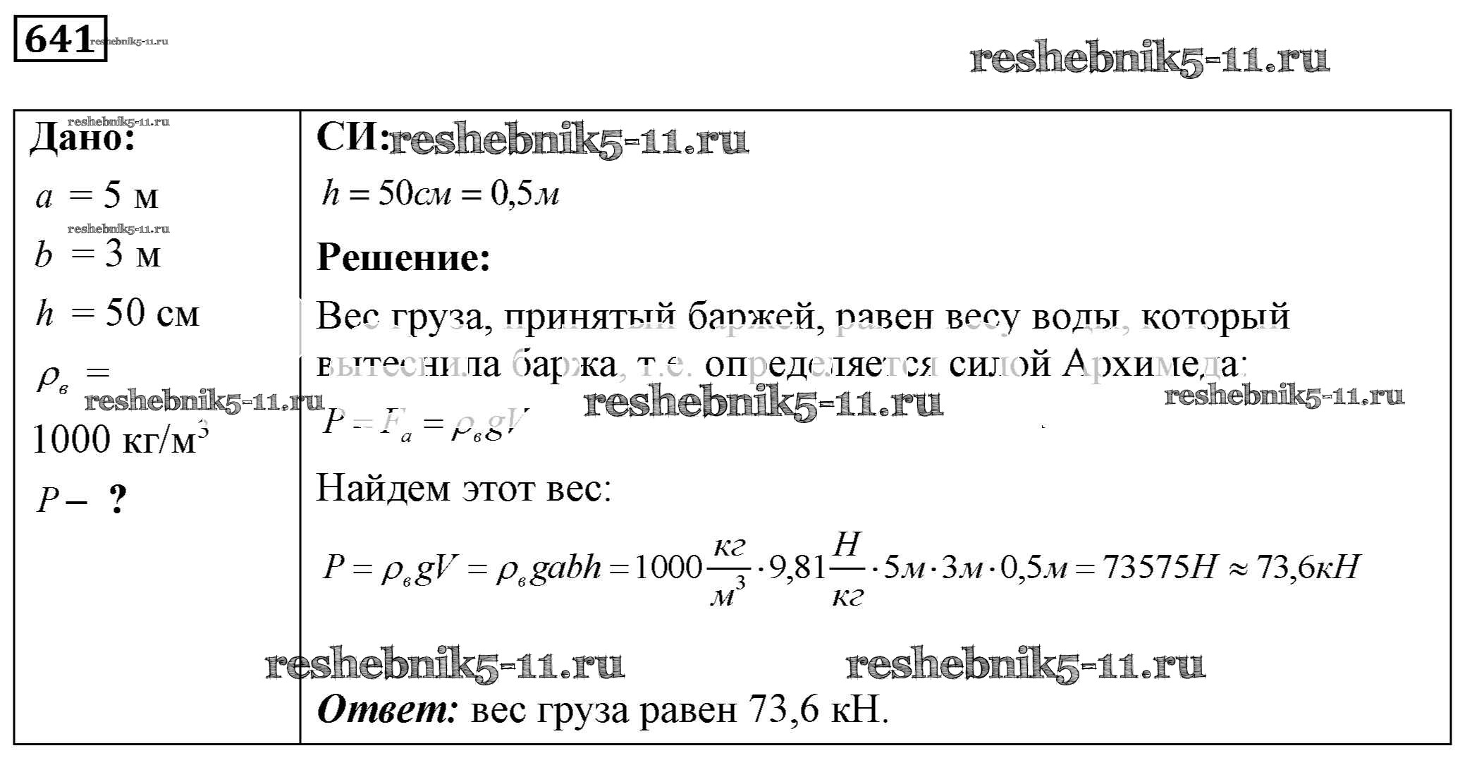 Готовая домашняя работа с ответами по Физике за 7, 8, 9 класс Лукашик, Иванова Сборник задач Просвещение 2011 ФГОС - Задания 641