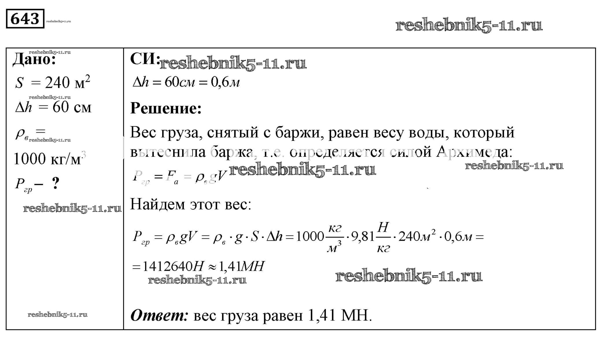 Готовая домашняя работа с ответами по Физике за 7, 8, 9 класс Лукашик, Иванова Сборник задач Просвещение 2011 ФГОС - Задания 643