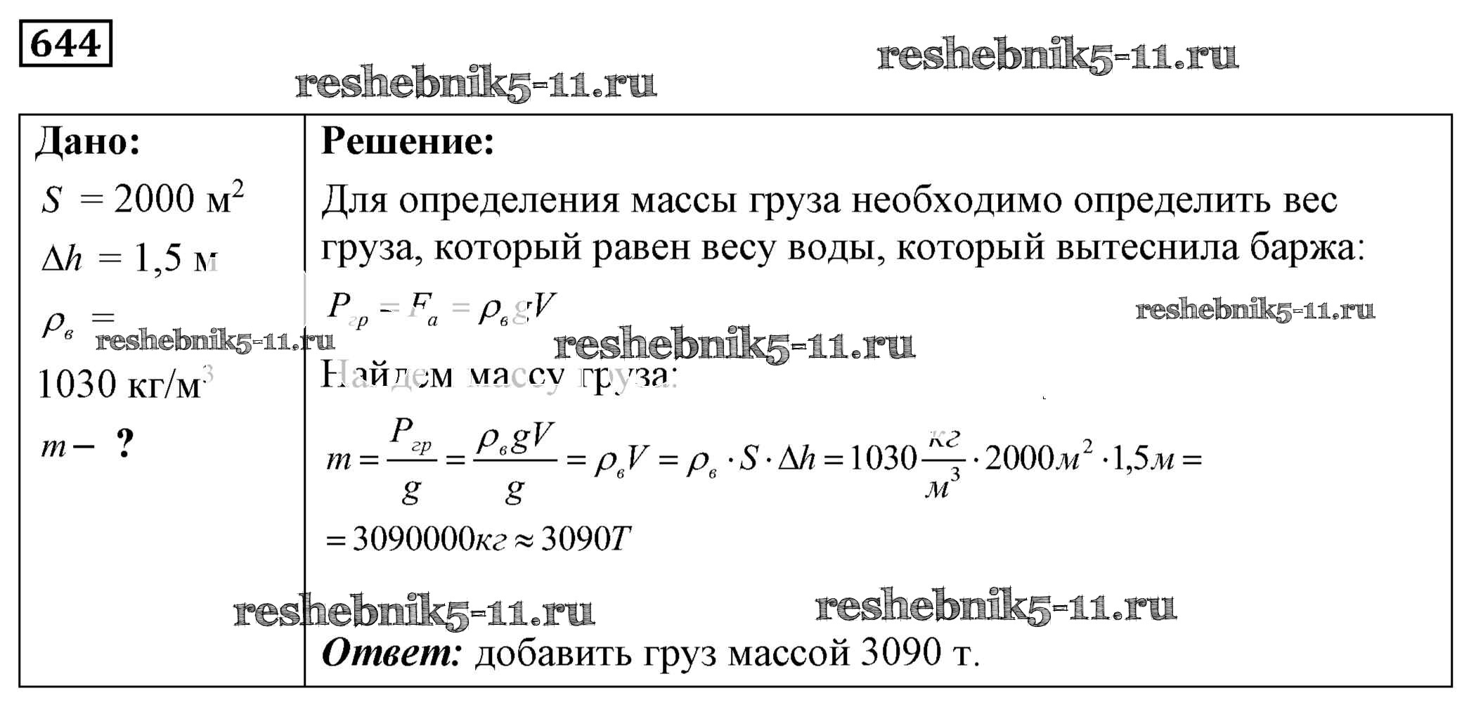 Готовая домашняя работа с ответами по Физике за 7, 8, 9 класс Лукашик, Иванова Сборник задач Просвещение 2011 ФГОС - Задания 644