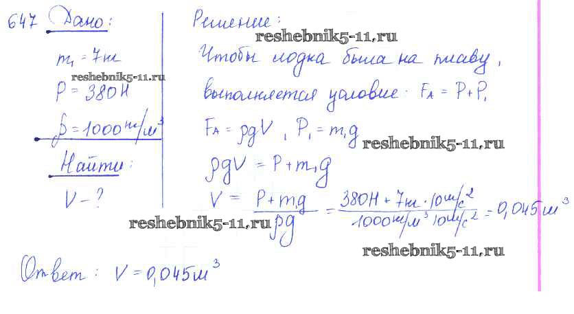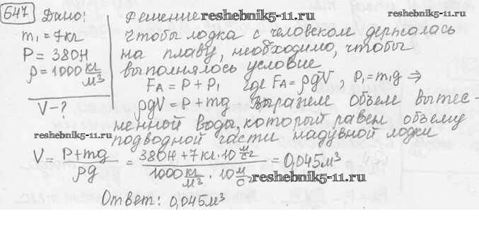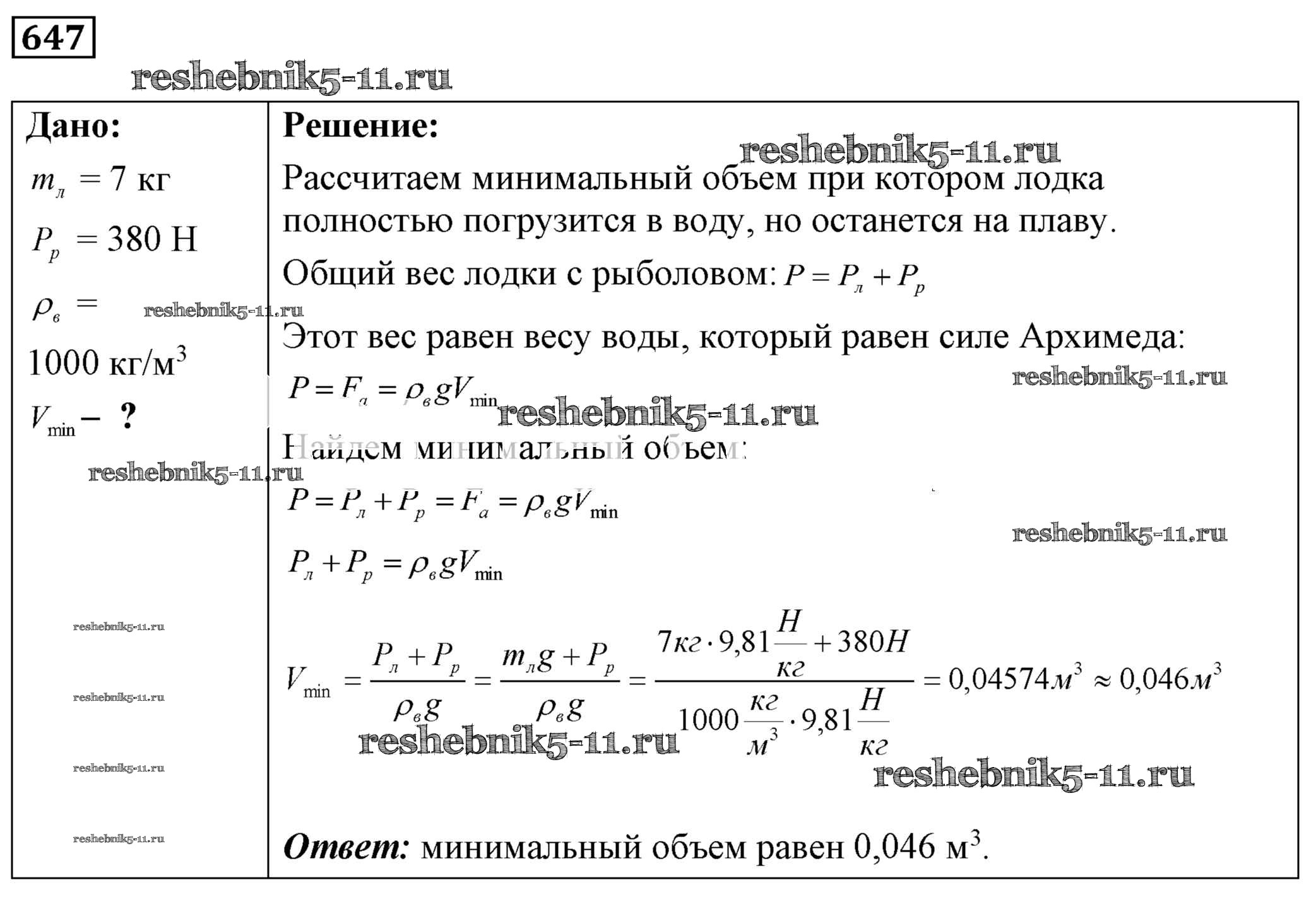 Готовая домашняя работа с ответами по Физике за 7, 8, 9 класс Лукашик, Иванова Сборник задач Просвещение 2011 ФГОС - Задания 647