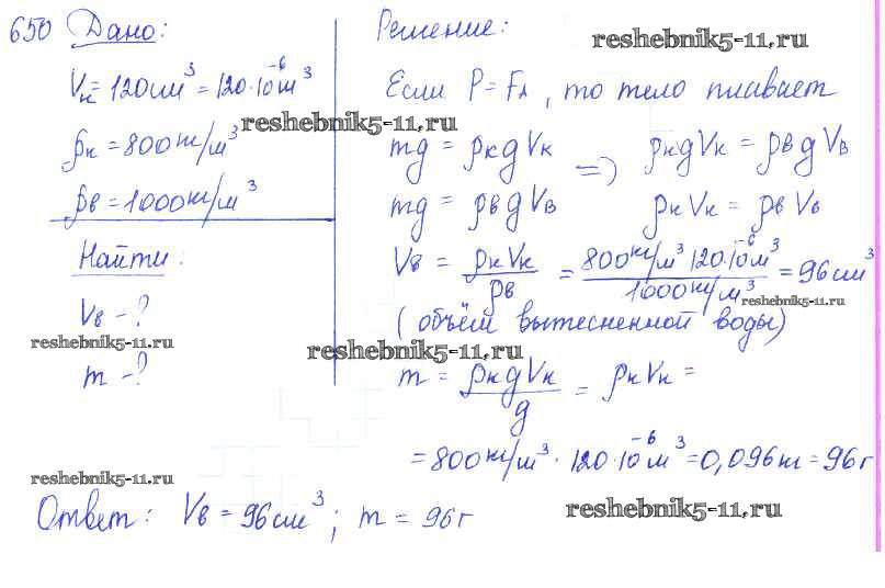 Готовая домашняя работа с ответами по Физике за 7, 8, 9 класс Лукашик, Иванова Сборник задач Просвещение 2011 ФГОС - Задания 650