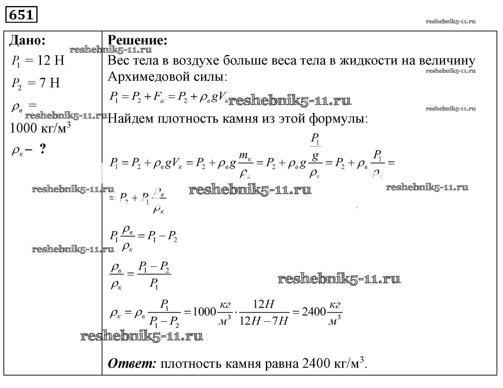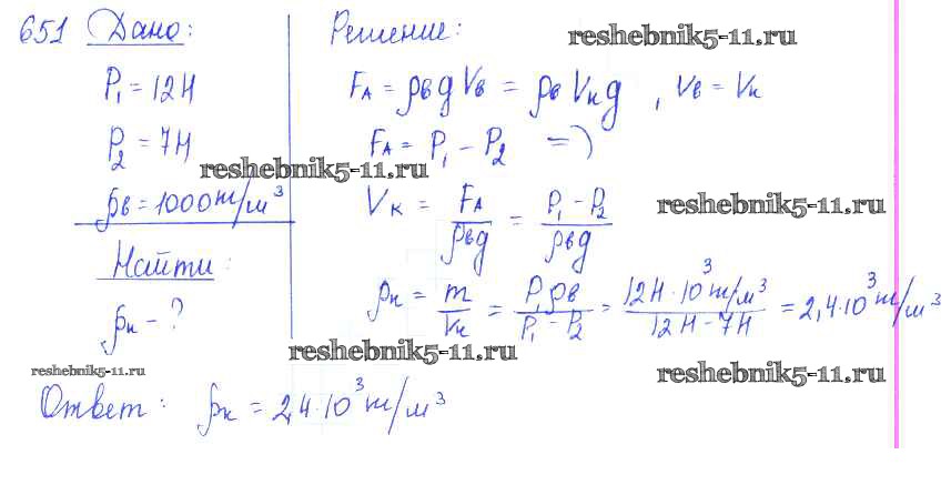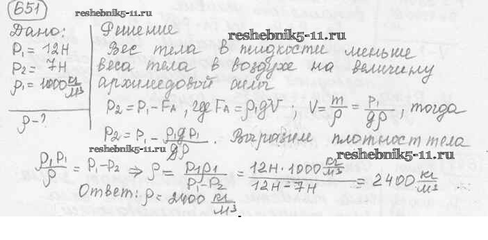 Готовая домашняя работа с ответами по Физике за 7, 8, 9 класс Лукашик, Иванова Сборник задач Просвещение 2011 ФГОС - Задания 651