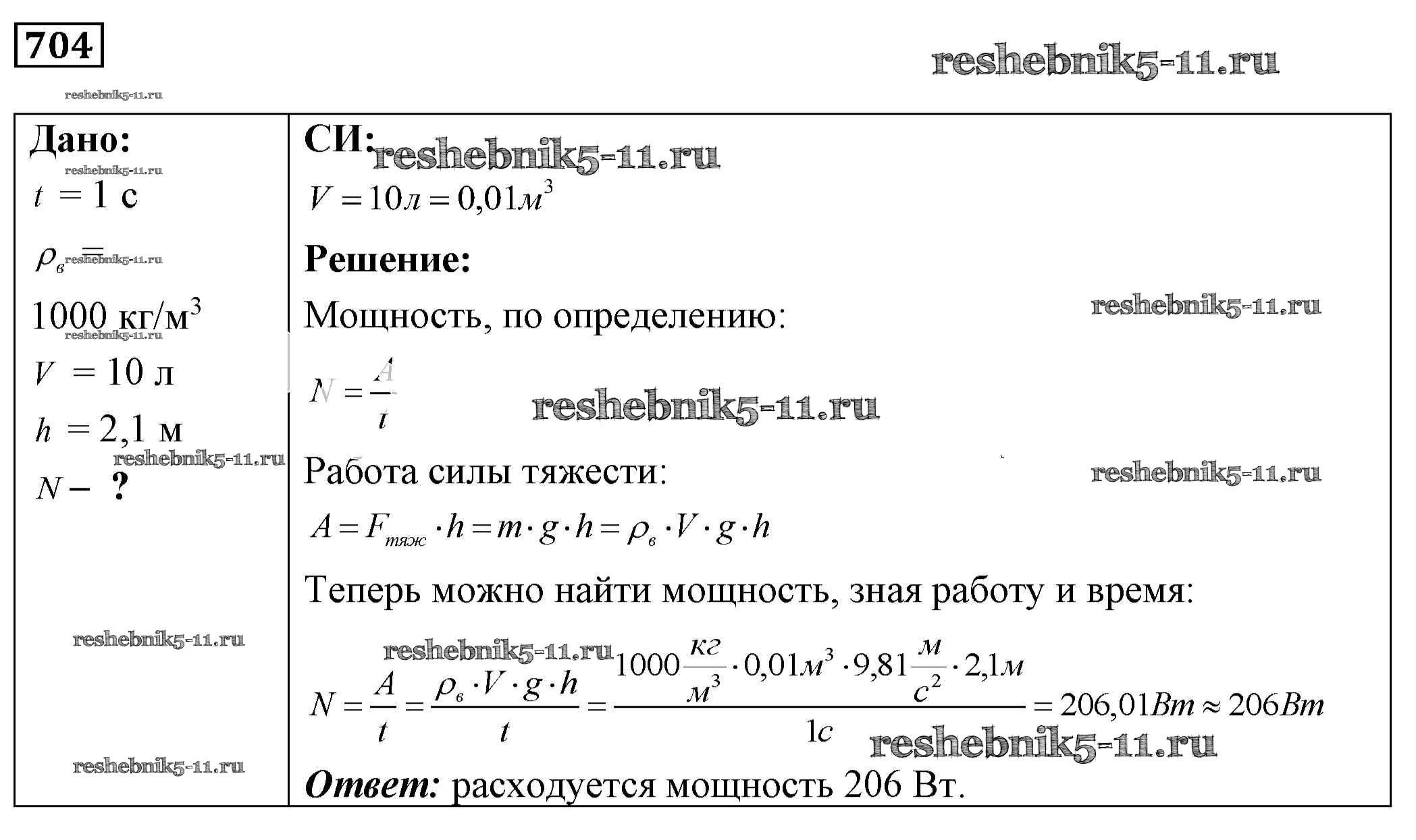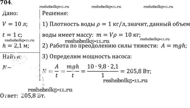 Готовая домашняя работа с ответами по Физике за 7, 8, 9 класс Лукашик, Иванова Сборник задач Просвещение 2011 ФГОС - Задания 704