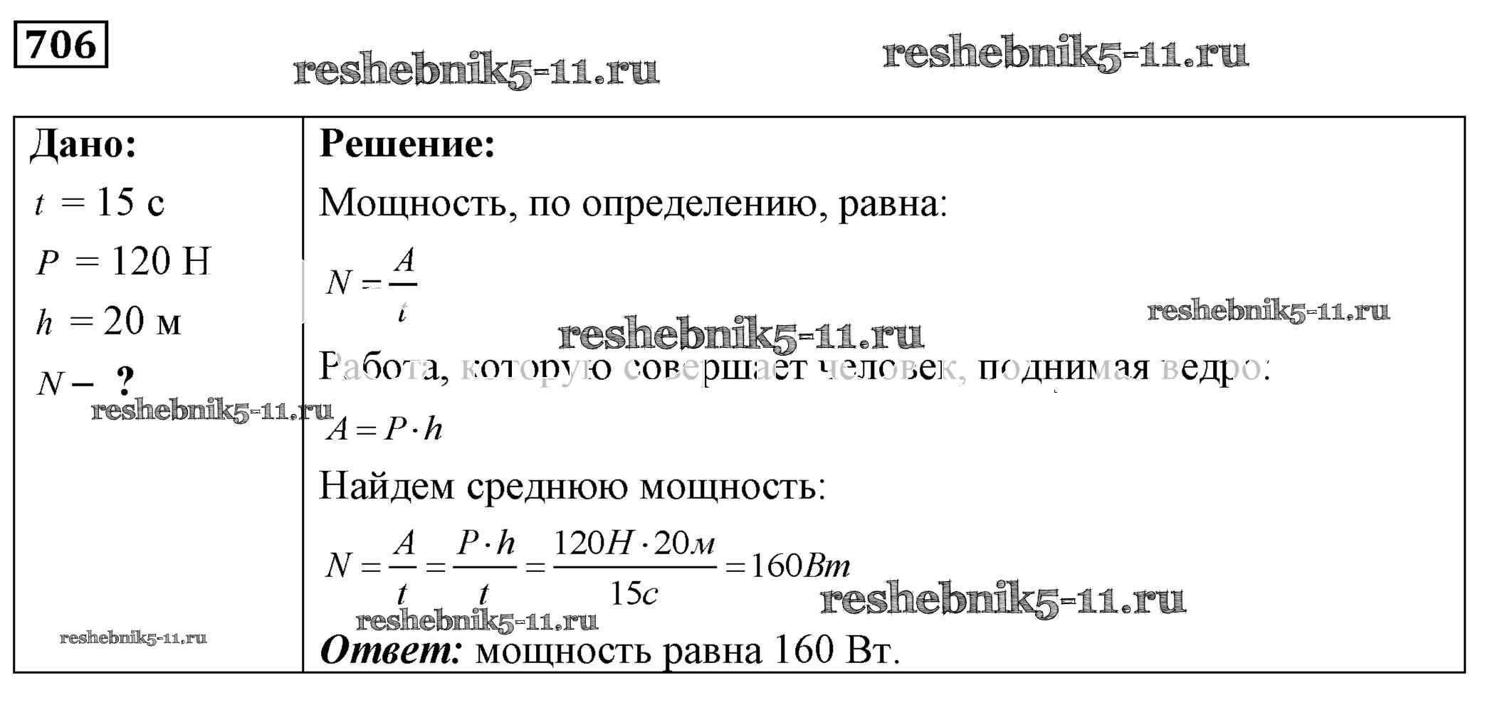 Готовая домашняя работа с ответами по Физике за 7, 8, 9 класс Лукашик, Иванова Сборник задач Просвещение 2011 ФГОС - Задания 706