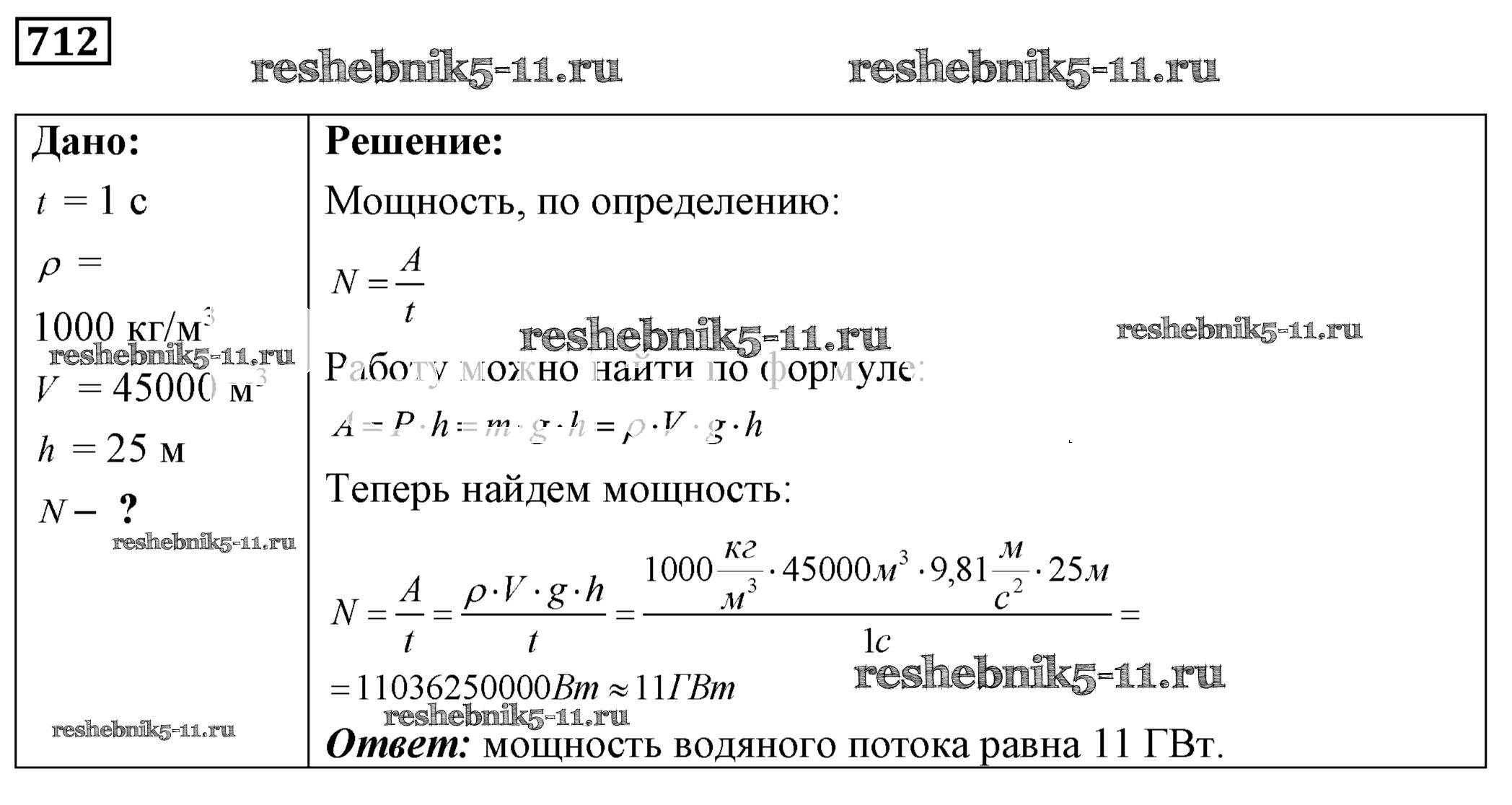 Готовая домашняя работа с ответами по Физике за 7, 8, 9 класс Лукашик, Иванова Сборник задач Просвещение 2011 ФГОС - Задания 712