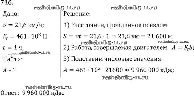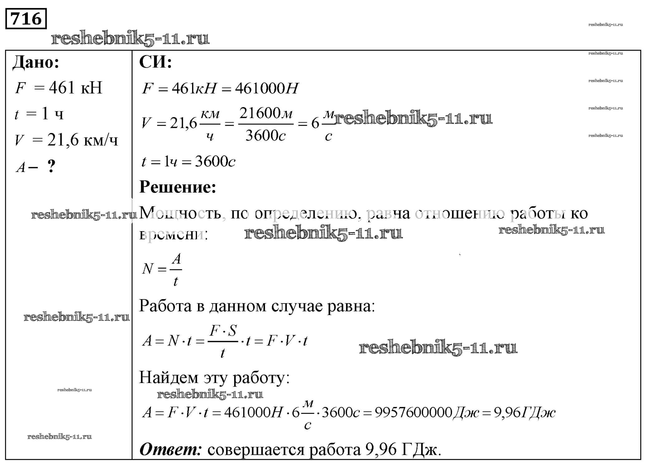 Готовая домашняя работа с ответами по Физике за 7, 8, 9 класс Лукашик, Иванова Сборник задач Просвещение 2011 ФГОС - Задания 716