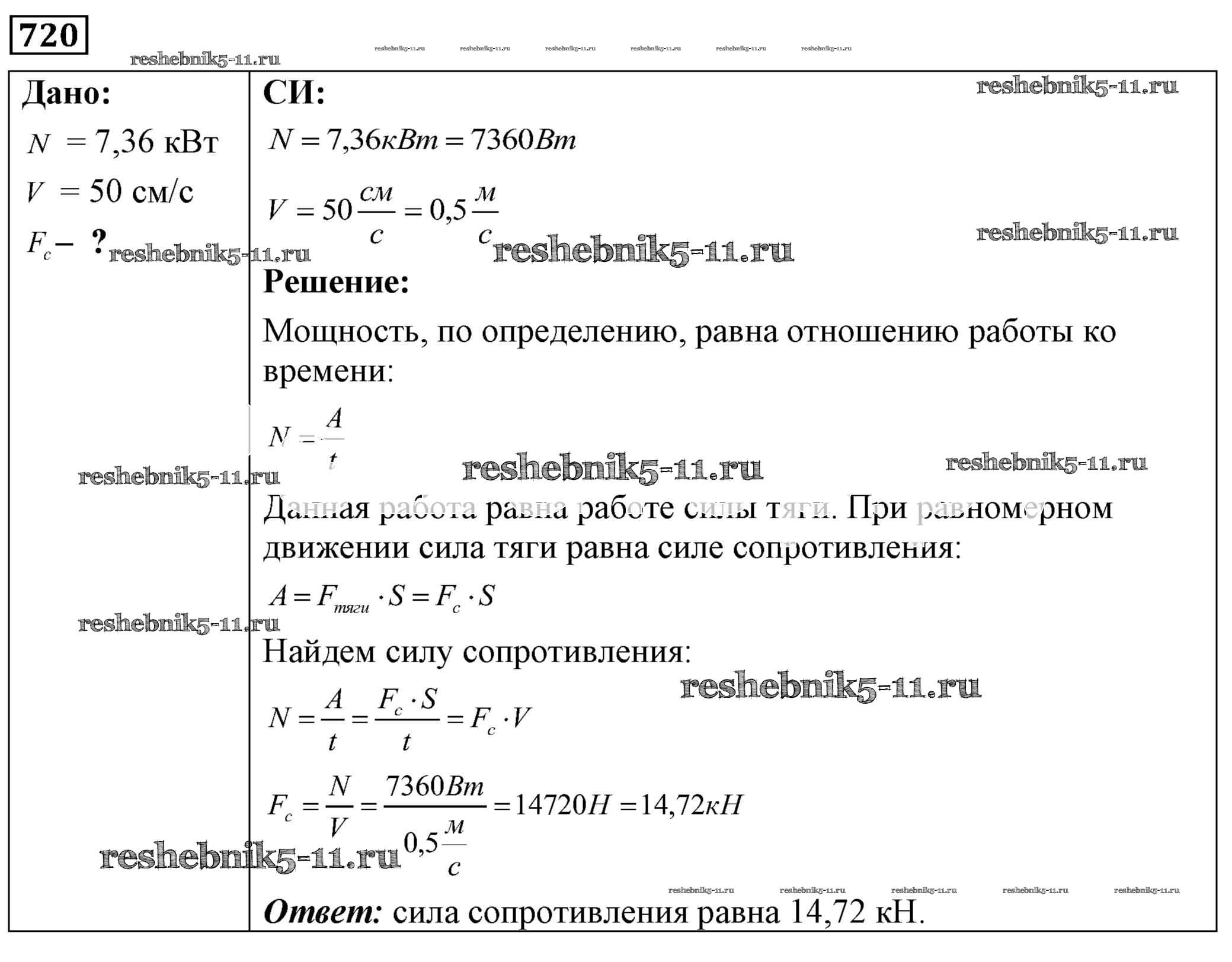Готовая домашняя работа с ответами по Физике за 7, 8, 9 класс Лукашик, Иванова Сборник задач Просвещение 2011 ФГОС - Задания 720