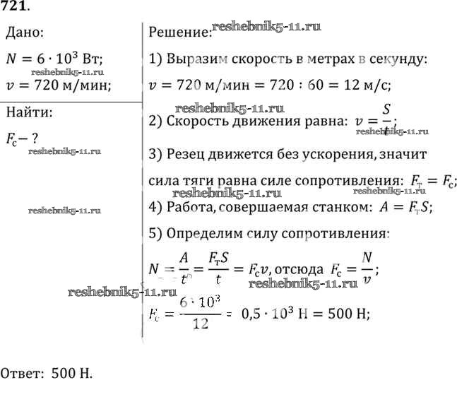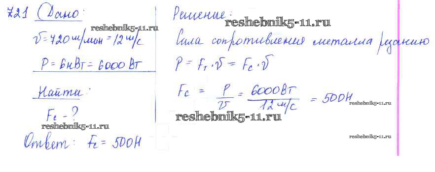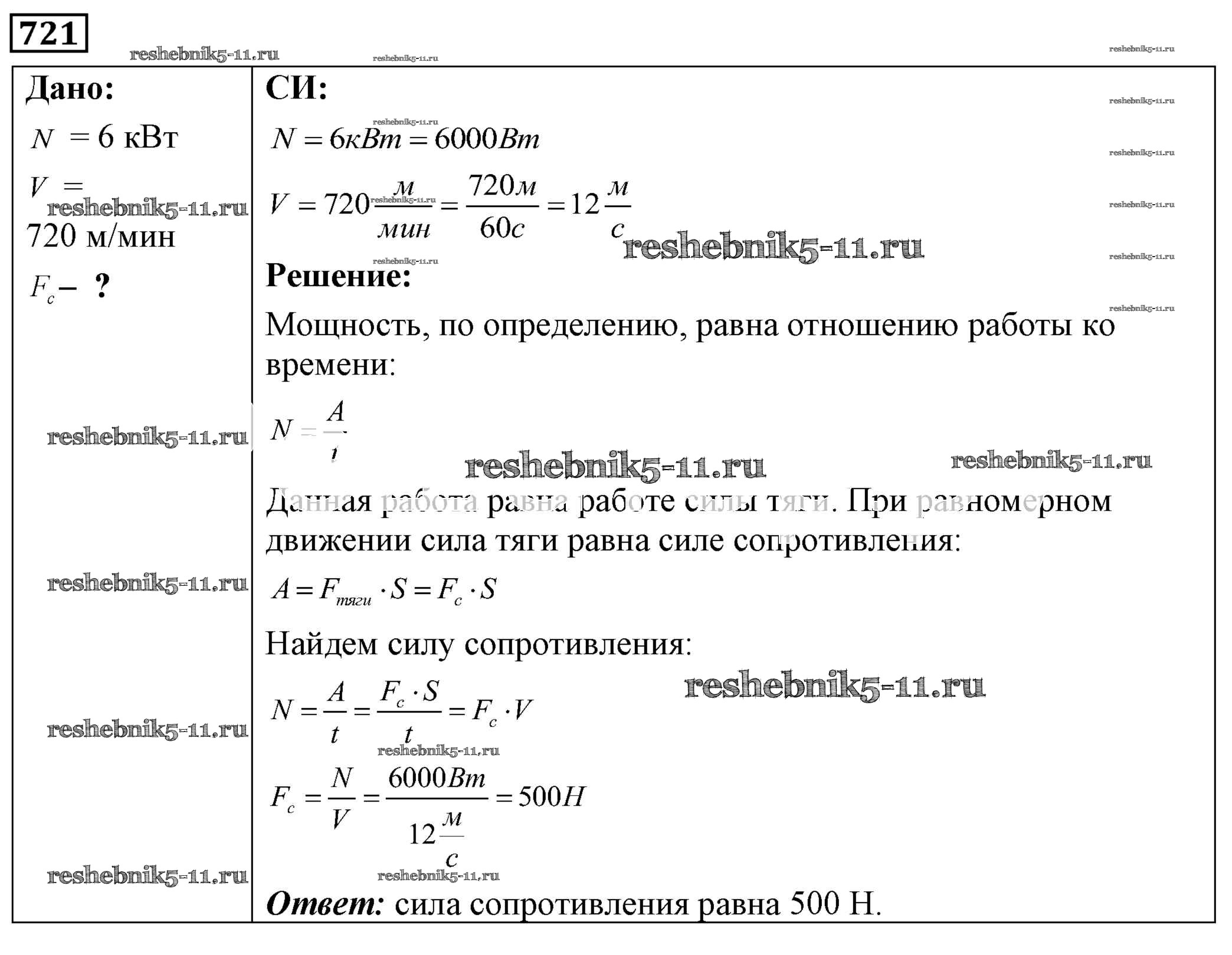Готовая домашняя работа с ответами по Физике за 7, 8, 9 класс Лукашик, Иванова Сборник задач Просвещение 2011 ФГОС - Задания 721